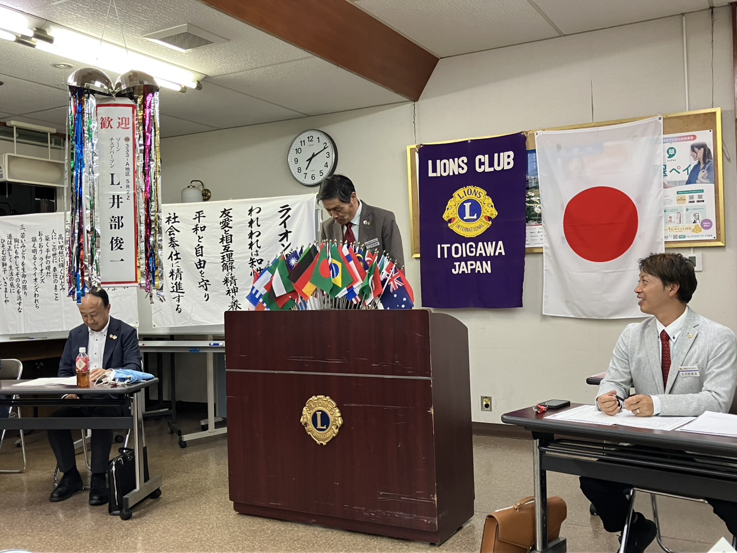 【10月第1例会・ZC訪問報告】 ホーム各種お知らせクラブからのお知らせ糸魚川ライオンズクラブ 糸魚川ライオンズクラブ 2025.10.10 2025年10月9日(水)、10月第1例会を開催しました。 本例会には、5R2Zゾーン・チェアパーソン(ZC)L井部が公式訪問され、地区方針やゾーン内での連携の重要性、そして奉仕活動への思いについてご挨拶をいただきました。 L井部ZCからのお言葉を胸に、クラブ一同、今後の活動にいっそう力を入れてまいります。ご多用の中、当クラブにお越しいただき、誠にありがとうございました。