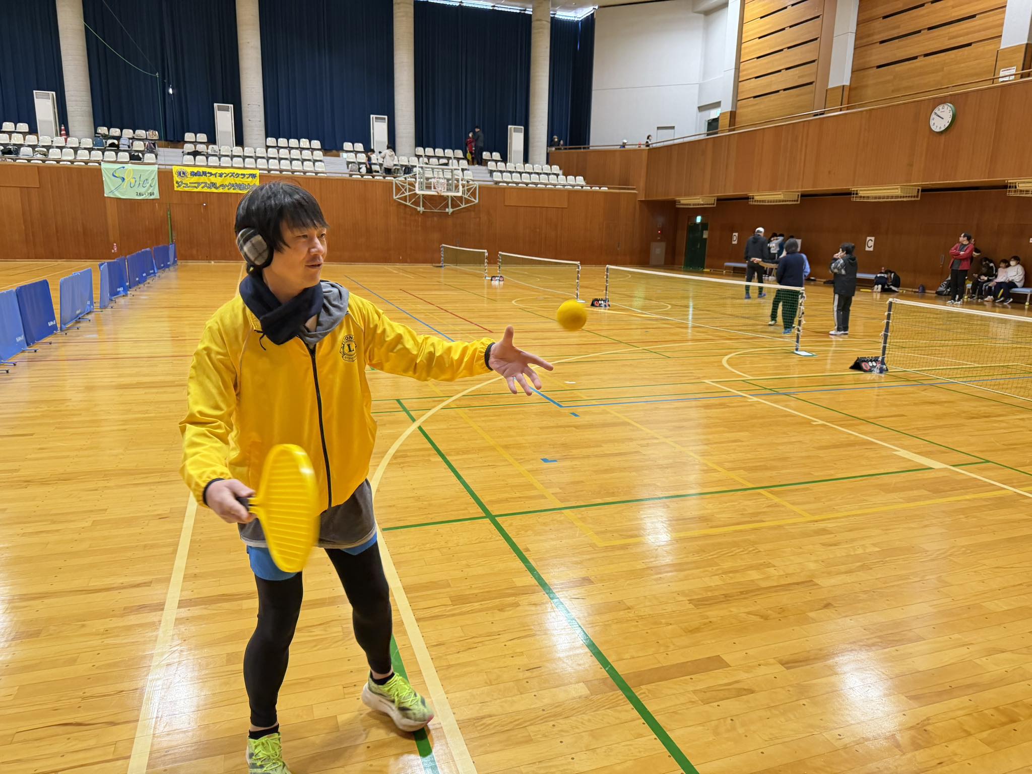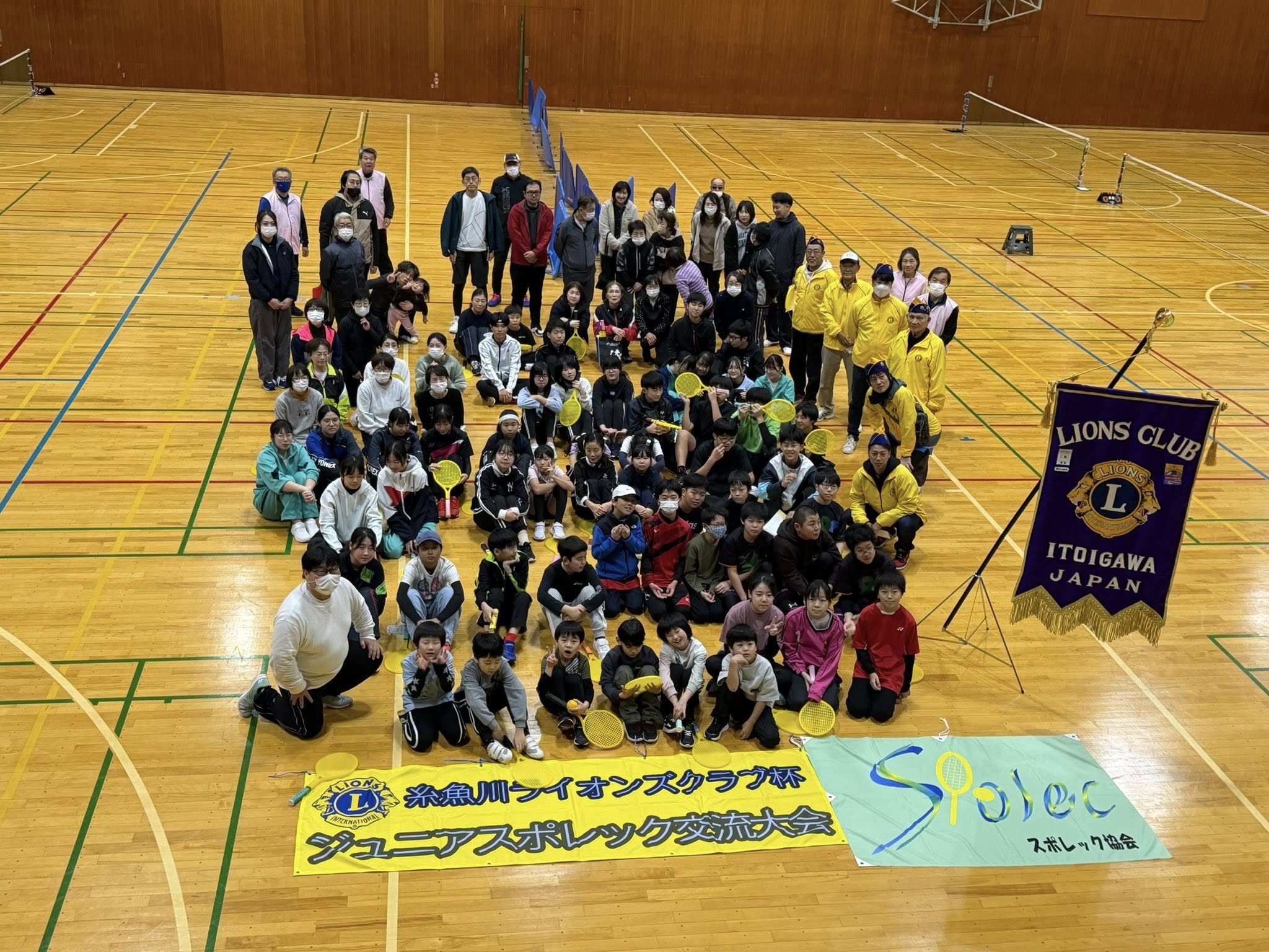 第17回糸魚川ライオンズクラブ杯ジュニアスポレック大会を開催しました。糸魚川発祥のスポーツでバトミントンコートでプラスチック製のラケットとスポンジ製のボールを使ってテニスをする競技です。