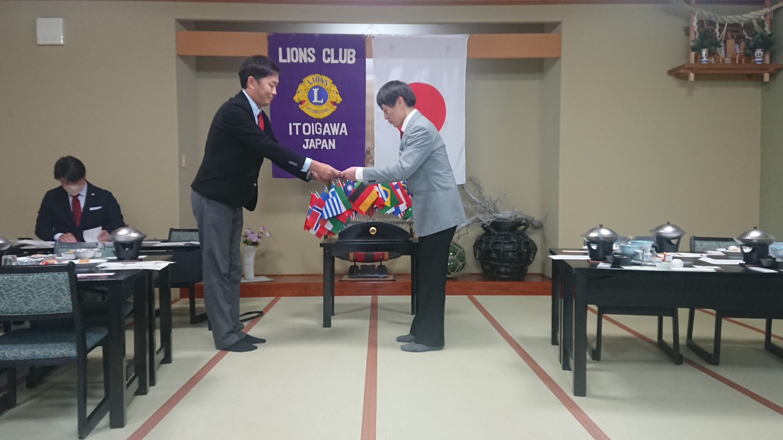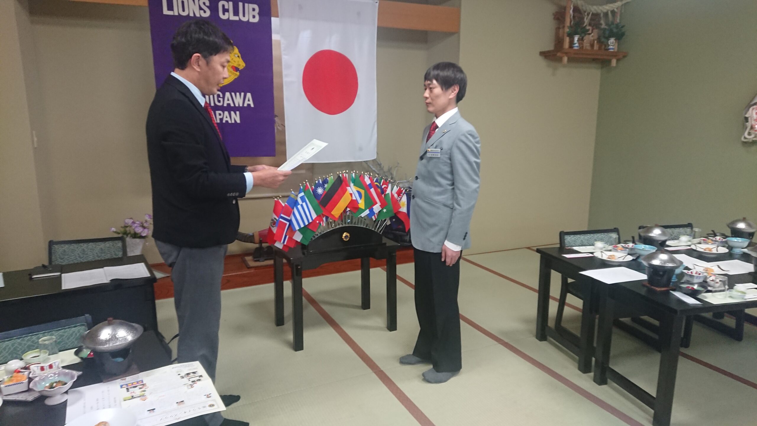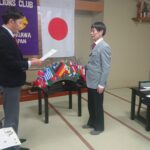 例会では、新会員をスポンサーしたL松澤が、国際協会からの感謝状を第一副会長L東野を通じて授与されました。