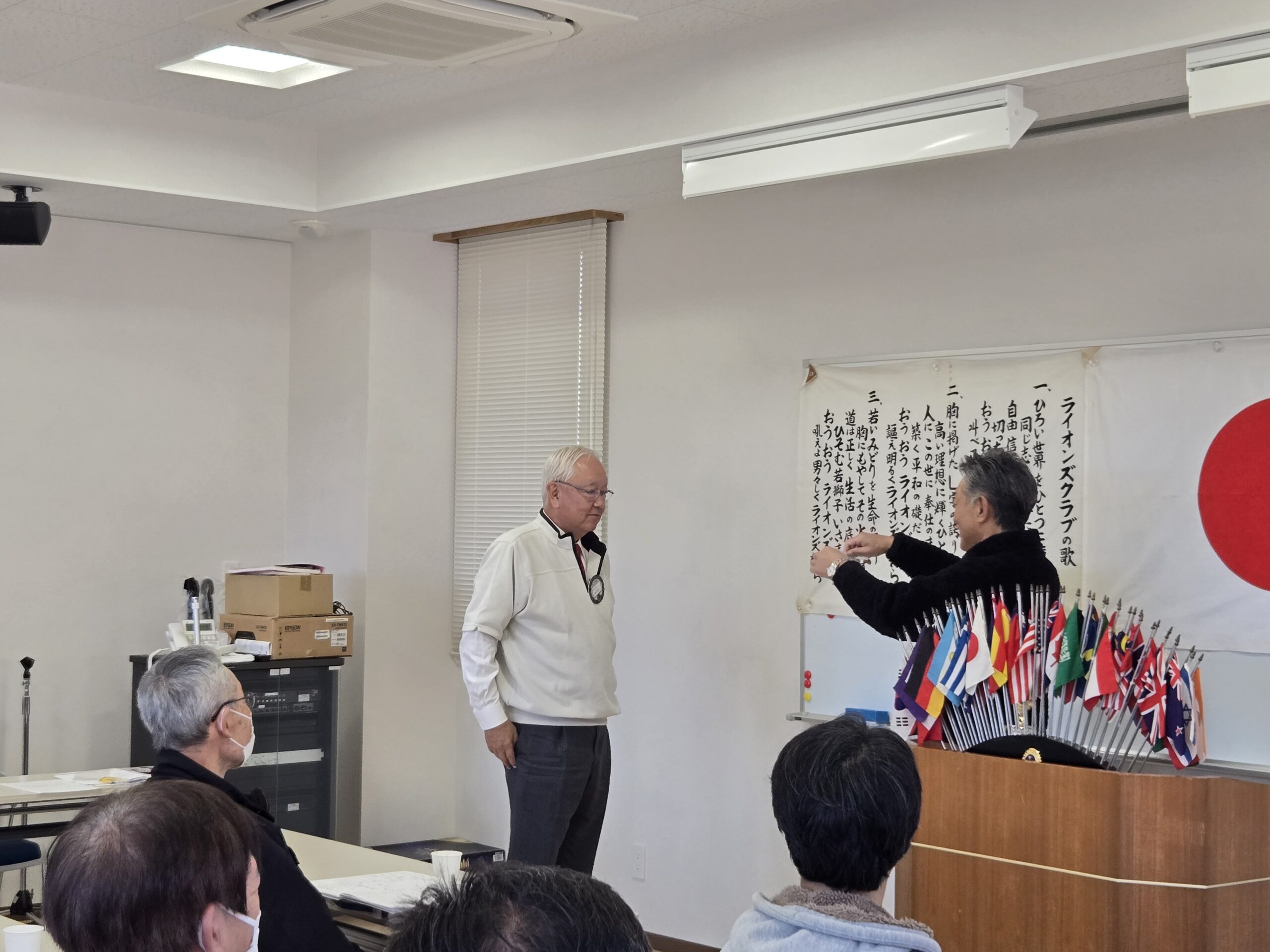 今回の例会にて、メンバーシップキーを贈呈されたL.品田、おめでとうございます!