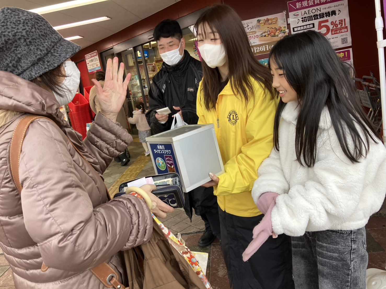 歳末助け合い募金活動 2025年12月14日(土) ホーム各種お知らせクラブからのお知らせ糸魚川ライオンズクラブ 糸魚川ライオンズクラブ 2025.12.16 2025年12月14日(土)、糸魚川ライオンズクラブでは歳末助け合い募金活動を実施しました。 寒さが一段と増す中、地域の皆さまのあたたかいご協力により、多くの善意が寄せられました。お寄せいただいた募金は、地域の福祉向上や支援を必要とする方々のため、有効に活用させていただきます。歳末のひととき、支え合いの心を形にできるこの活動を、今後も大切に続けてまいります。ご協力いただいた皆さまに、心より御礼申し上げます。