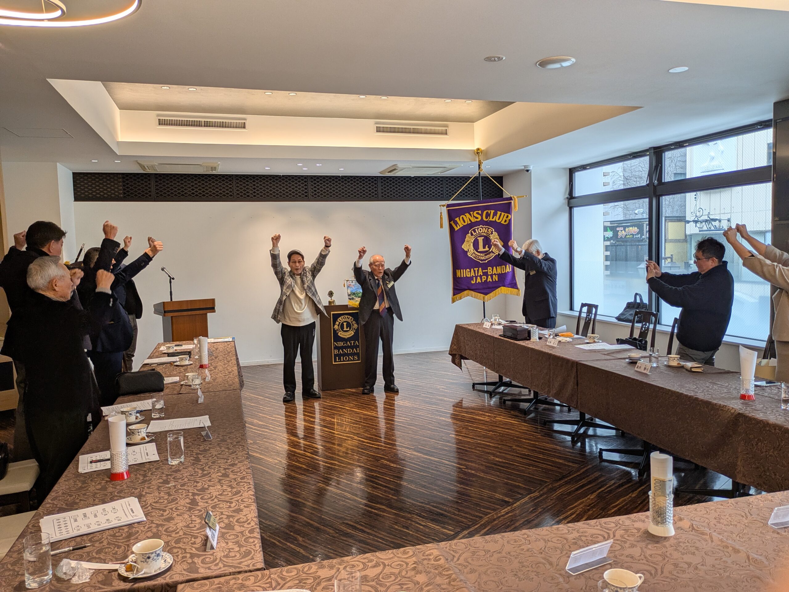 第1291回例会 ホーム各種お知らせクラブからのお知らせ新潟万代ライオンズクラブ 新潟万代ライオンズクラブ 2026.02.06 2月3日新潟第一ホテルにて第1291回例会を開催しました。 先月の例会に出席できなかった会員の長寿と年男のお祝いを行い、 次期役員理事指名委員が任命されました。