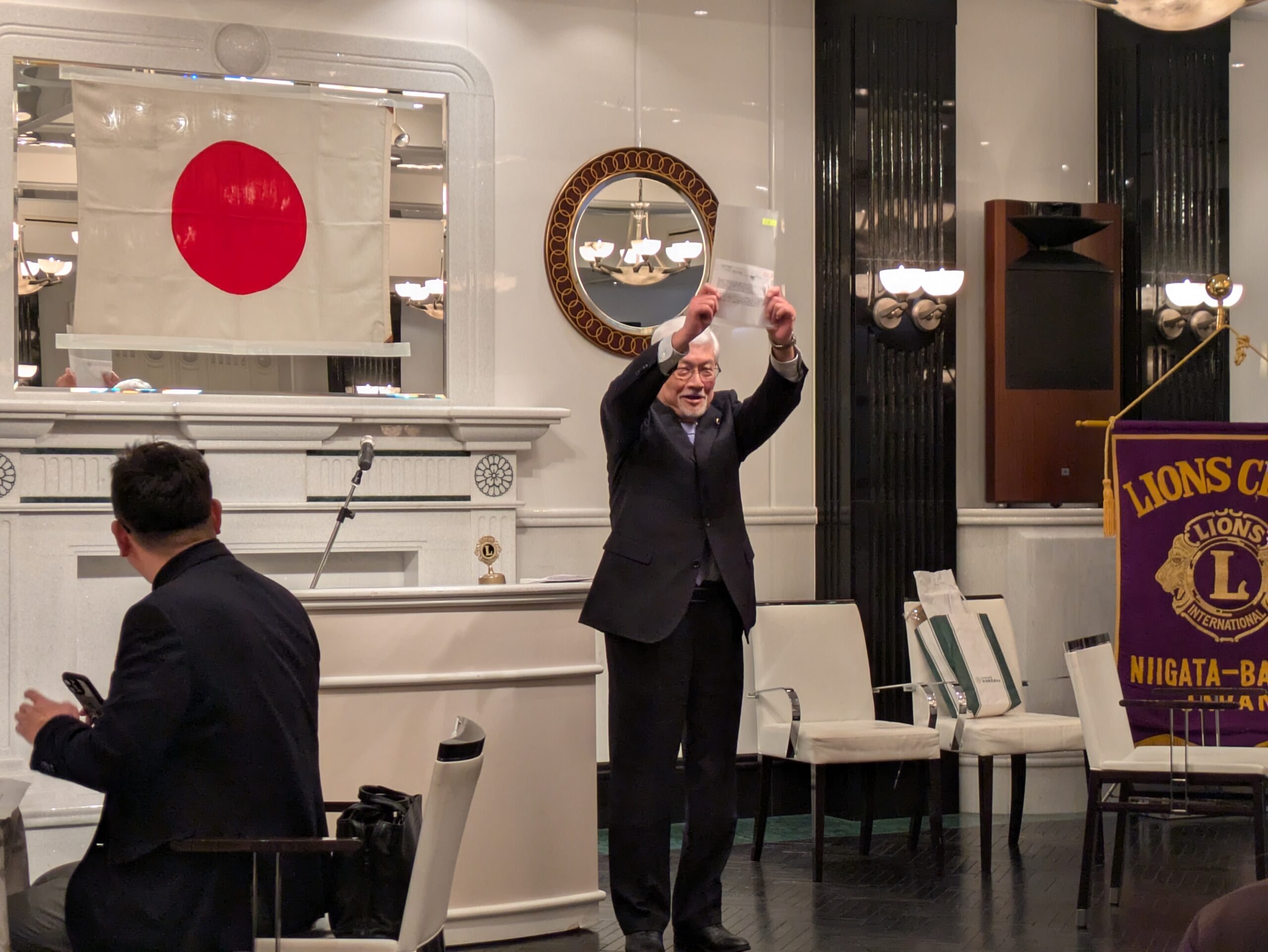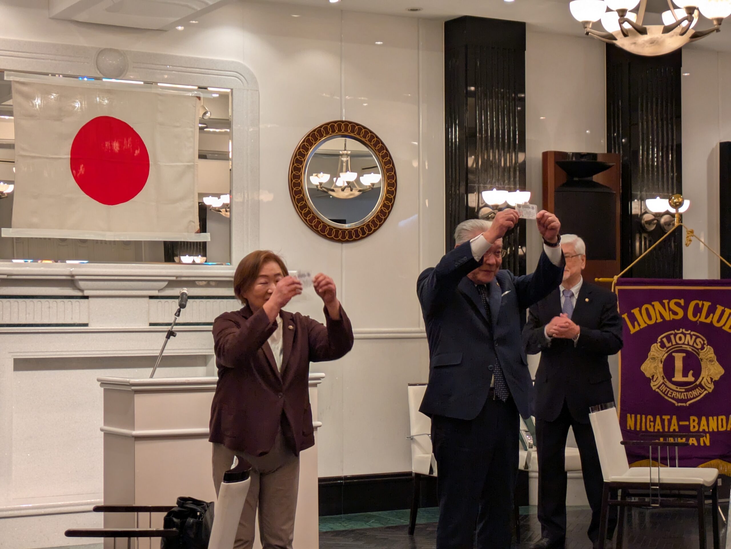 第1290回新春例会 ホーム各種お知らせクラブからのお知らせ新潟万代ライオンズクラブ 新潟万代ライオンズクラブ 2026.02.06 1月15日迎賓館ときわにて、新春例会を開催しました。 例会前には護国神社でクラブの発展とメンバーのご多幸を祈って 新春祈祷をしていただきました。 また、60周年記念事業の支援金贈呈式も執り行いました。 その後、各種アワードの贈呈、認定証の伝達を行い例会は粛々と進められました。 懇親会では長寿と年男のお祝いをし盛会に終了しました。