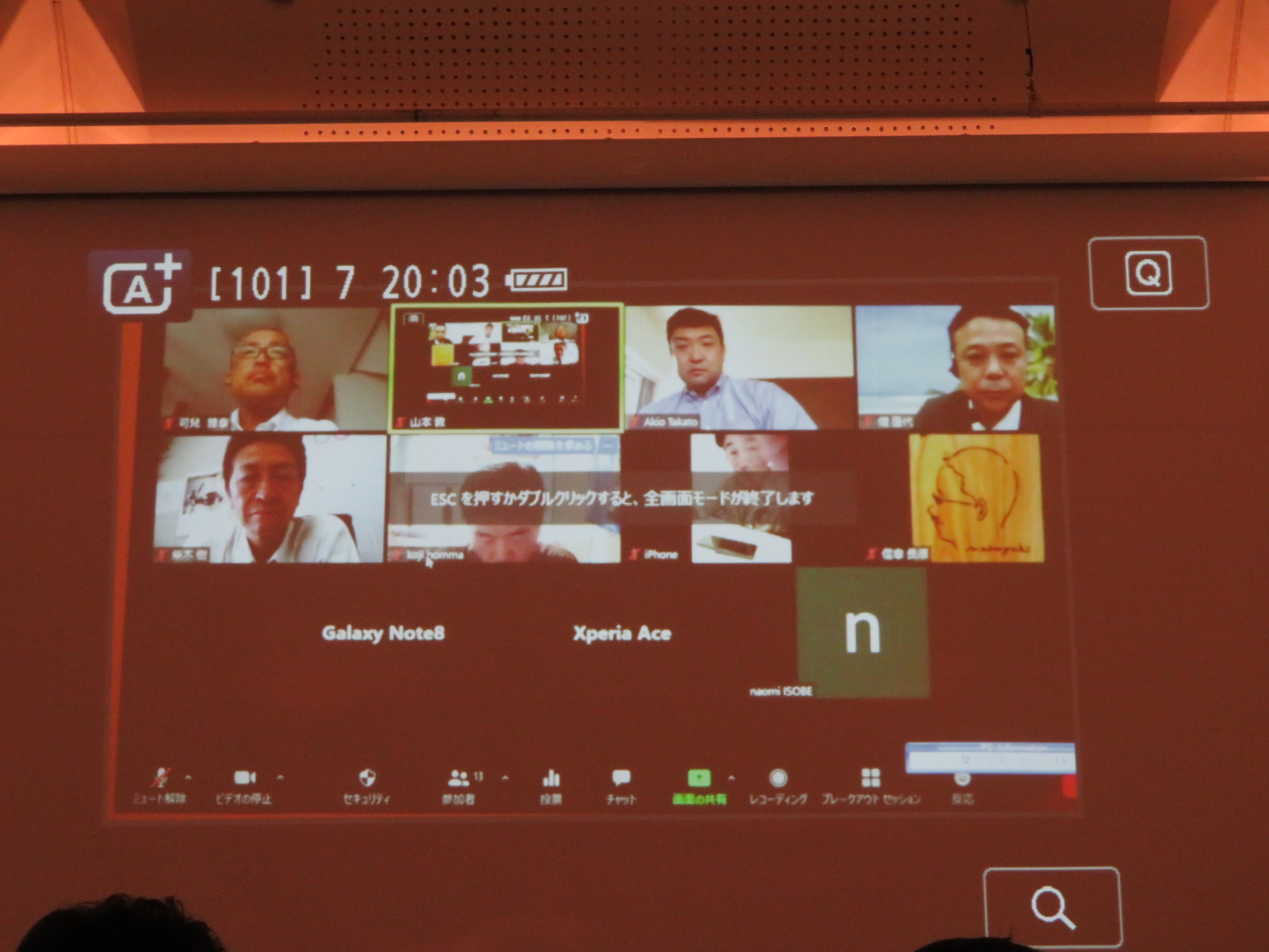 定例会場のホテルニューオータニ長岡とZOOMでの参加メンバーの皆さんをつなぎ