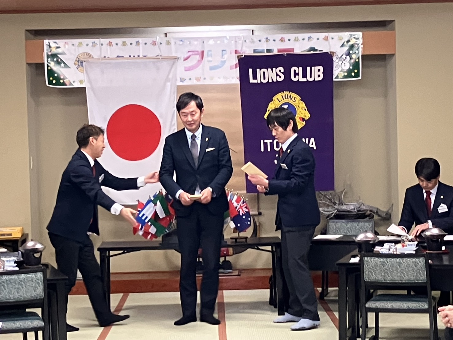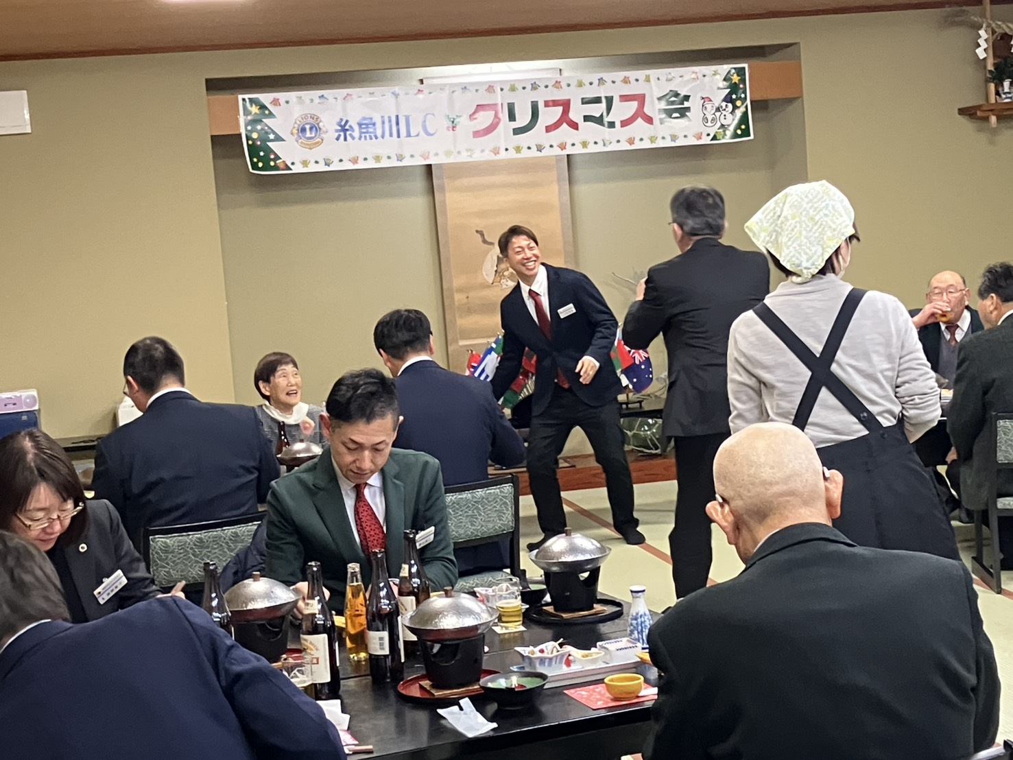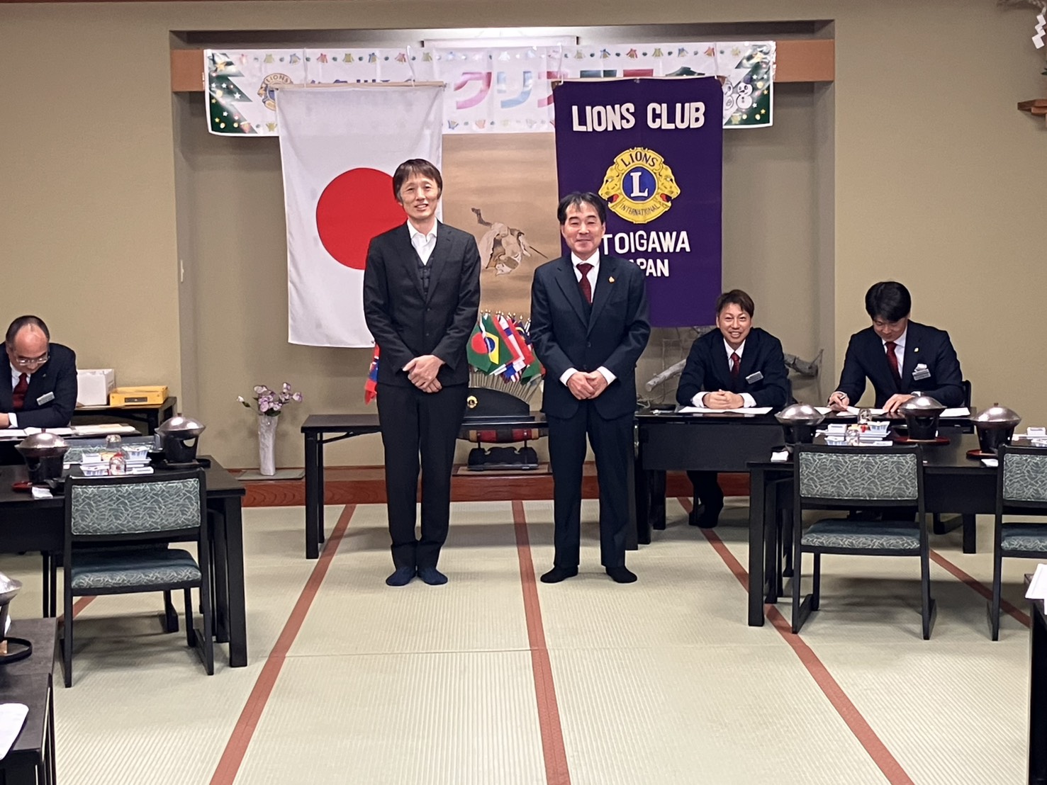 12月26日(金)の12月第2例会では、糸魚川ライオンズクラブ恒例のクリスマス会を開催いたしました。会場は終始あたたかな雰囲気に包まれ、会員同士が一年の労をねぎらいながら、笑顔あふれるひとときを過ごしました。