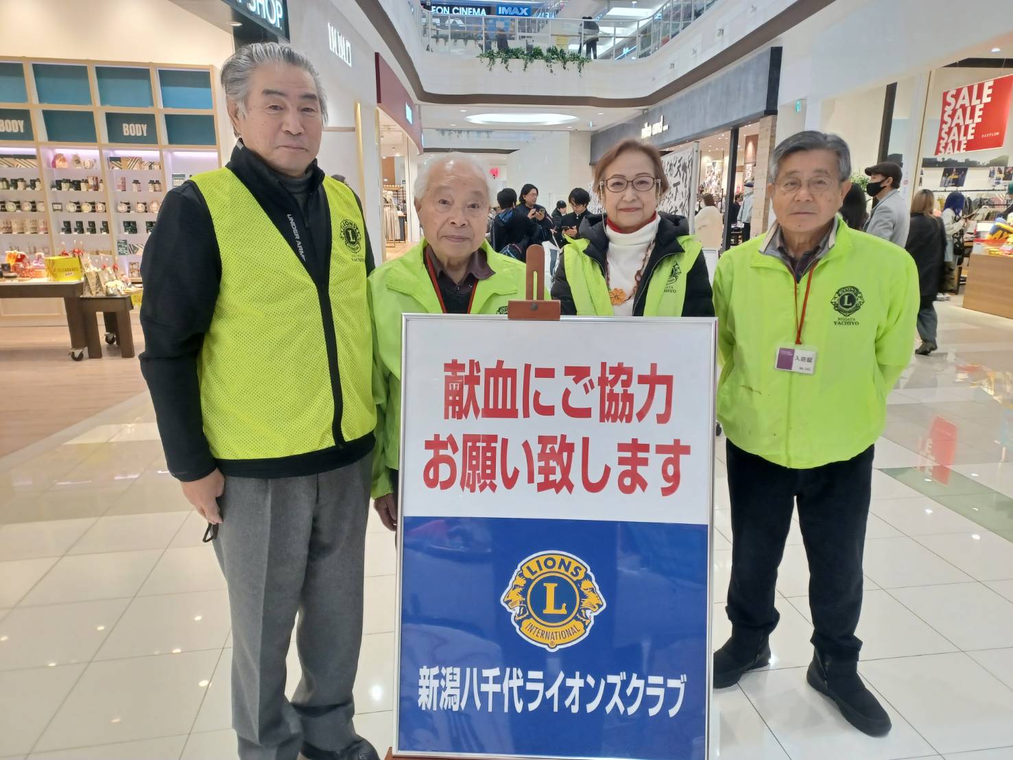 1月10日(土)献血PR活動 ホーム各種お知らせクラブからのお知らせ新潟八千代ライオンズクラブ 新潟八千代ライオンズクラブ 2026.01.13 イオンモール新潟亀田インターにてL 山本、L吉田、L清野、L髙橋(貞)、の4名で献血PR活動を行いました。 本日は3連休のためか来客数が多く感じられました。店舗内ではイベント用のロンドンバスが運行され 子供達に喜ばれていました。午後の献血者に余裕があるとの事で、声かけ等PR活動を実施しました。