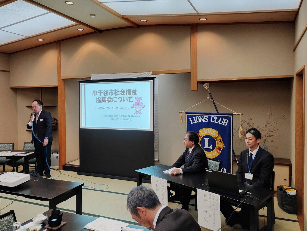 11月19日、11月第一例会開催 ホーム各種お知らせクラブからのお知らせ小千谷ライオンズクラブ 小千谷ライオンズクラブ 2026.01.23 11月19日(水)山長におきまして11月第一例会を開催いたしました。 ゲストスピーチに社会福祉会のお二方をお迎えいたしました。 詳しくは当クラブホームページ活動日記をご覧ください。 小千谷ライオンズクラブ活動日記