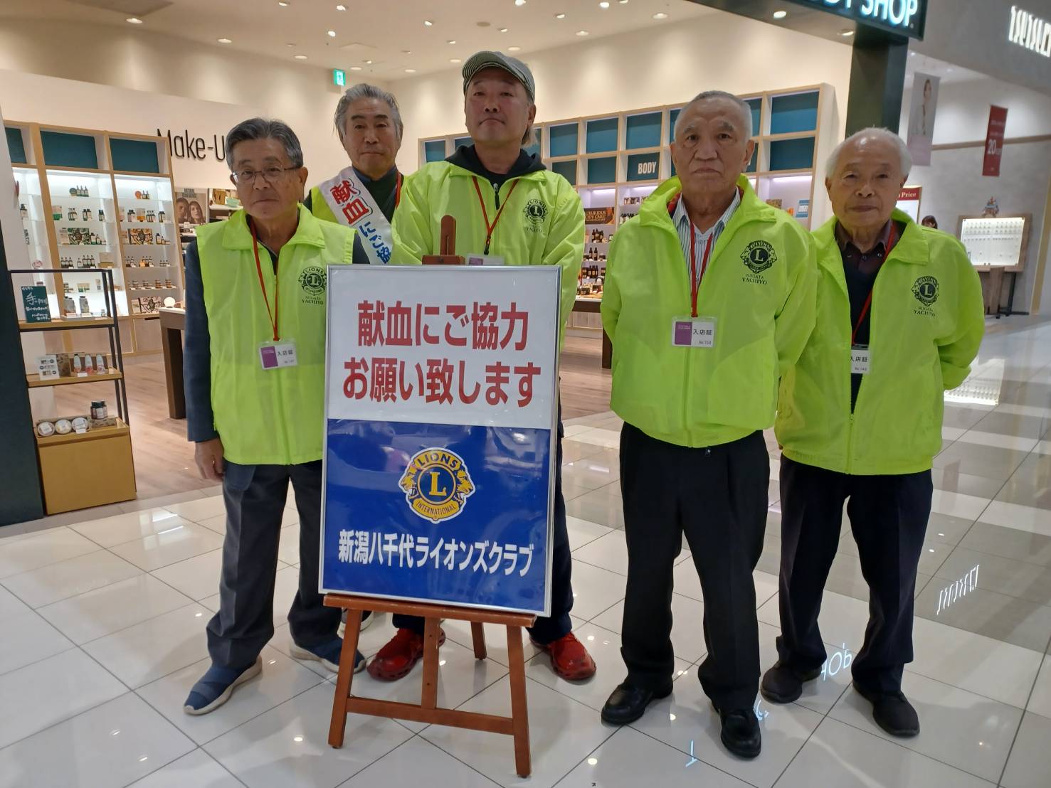 11月8日(土)献血PR活動 ホーム各種お知らせクラブからのお知らせ新潟八千代ライオンズクラブ 新潟八千代ライオンズクラブ 2025.11.10 イオンモール新潟亀田インターにてL 山本、L加藤、L吉田、L清野、L眞保の5名で献血PR活動を行いました。 本日は午前、午後とも献血予約が少ないとの事で、声掛けを重点にPR活動を実施しました。