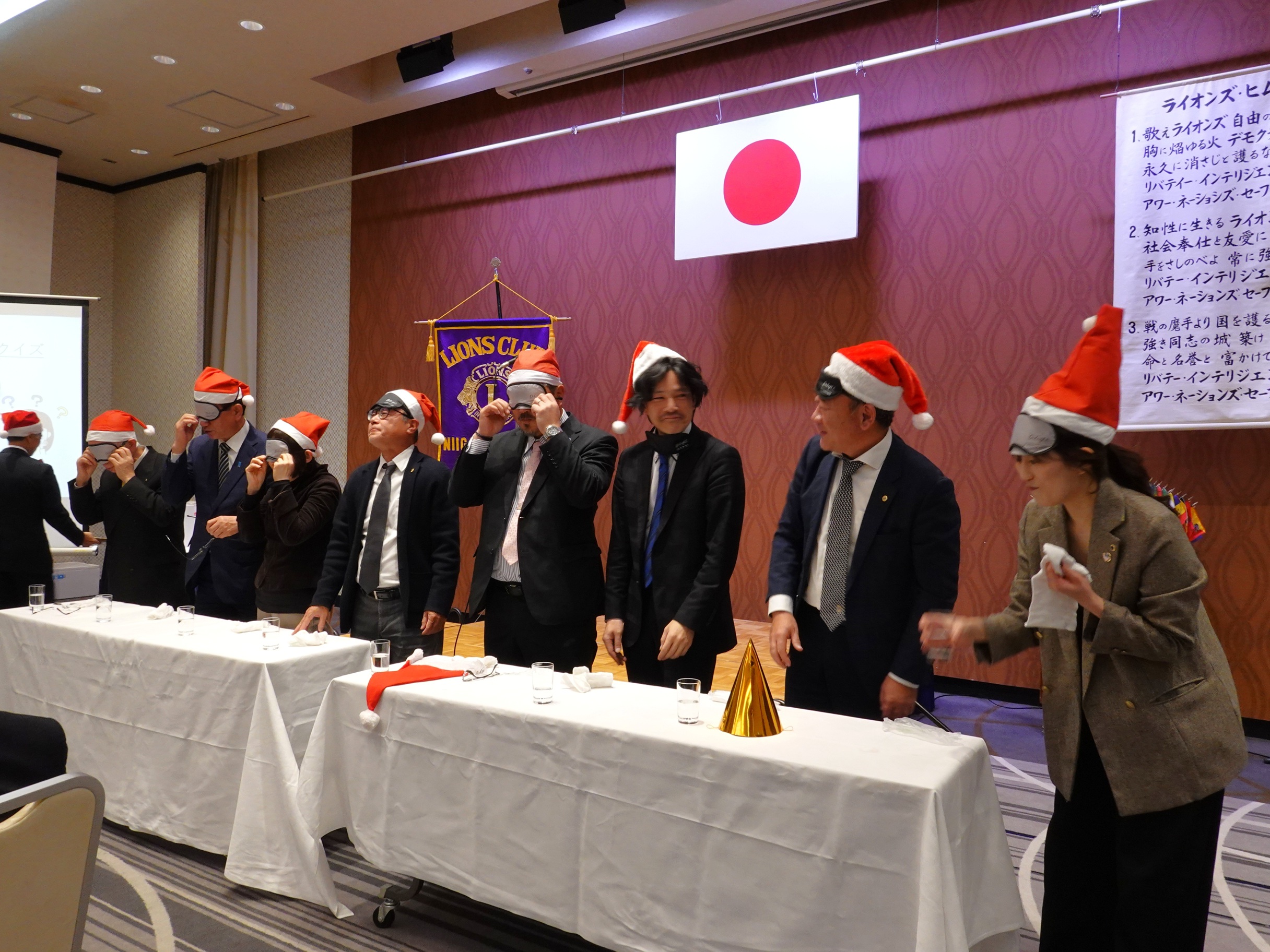 12月18日(木)第1302回例会(忘年クリスマス例会) ホーム各種お知らせクラブからのお知らせ新潟八千代ライオンズクラブ 新潟八千代ライオンズクラブ 2025.12.19 新潟東ライオンズクラブ、新潟万代ライオンズクラブ、豊栄ライオンズクラブの3役を迎え 忘年クリスマス例会を行いました。例会後の懇親会ではテーブル対抗ゲームなどで親睦を深め ビジターの皆さんと共に楽しいひと時を過ごしました。