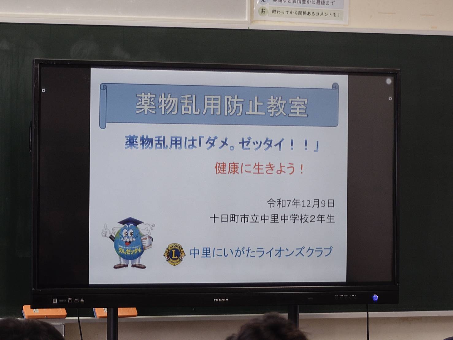 12月9日(火)中里中学校にて薬物乱用防止教室 ホーム各種お知らせクラブからのお知らせ中里にいがたライオンズクラブ 中里にいがたライオンズクラブ 2025.12.10 今回は、十日町ライオンズクラブさんと川西にいがたライオンズクラブからも見学に来られて ロールプレイングに参加して頂きました