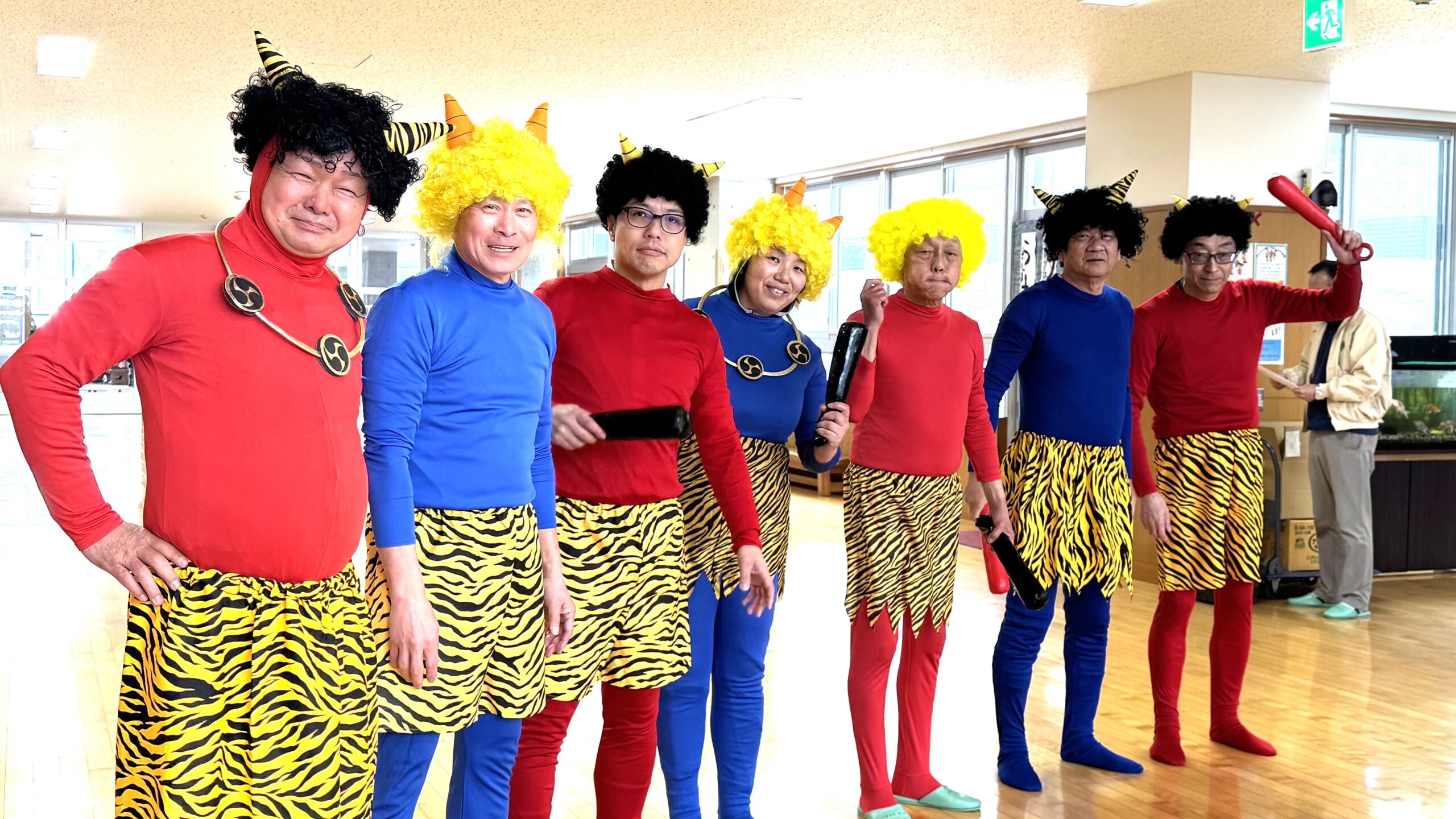 平成17年から始まった十日町LC恒例のアクティビティです。節分の豆まき集会を通じて、子供達との交流を楽しむとともに、伝統文化の継承や社会適応能力育成の一助とすることを趣旨に行っています。当日は長く続いた寒波の影響で大雪となった中、17名の十日町LCメンバーが集合、7人の鬼役とプレゼンターの方達です。