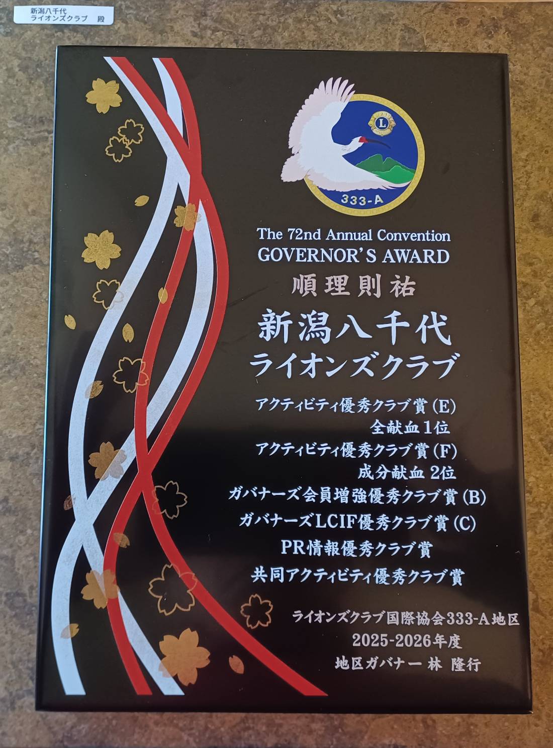 4月18日(土)333-A地区第72回年次大会 ホーム各種お知らせクラブからのお知らせ新潟八千代ライオンズクラブ 新潟八千代ライオンズクラブ 2026.04.20 ライオンズクラブ国際協会333-A地区 第72回年次大会が、L林 隆行 地区ガバナーの地元「アミューズメント佐渡」 で開催されました。 当クラブは6のアワードを頂き、 「献眼献血推進・糖尿病予防委員長」 のL山本建治 会長が 「国際会長リーダーシップアワード」 を受賞しました。