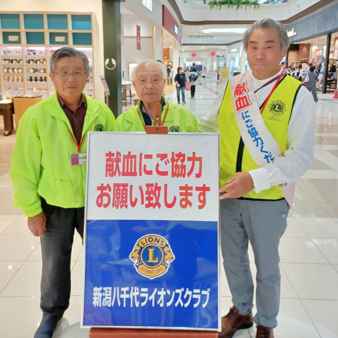 10月11日(土)献血PR活動 ホーム各種お知らせクラブからのお知らせ新潟八千代ライオンズクラブ 新潟八千代ライオンズクラブ 2025.10.14 イオンモール新潟亀田インターにてL 山本、L吉田、L清野、の3名で献血PR活動を行いました。 連休前の週末と雨のせいか、いくぶん来客数が多く午前中は予約者で予定人数が埋まりましたが 午後の予約者に余裕があるとの事で、献血協力の声かけを重点にPR活動を実施しました。 L清野の娘さんも参加していただきました。ご苦労様でした。