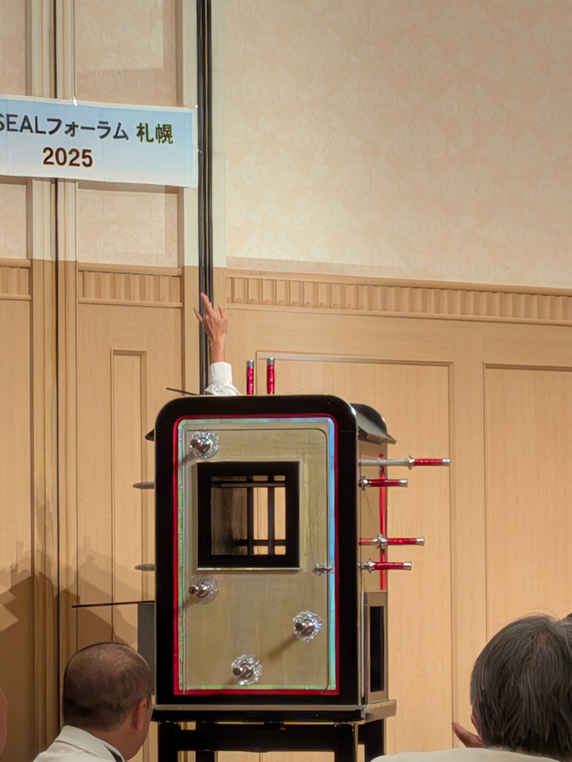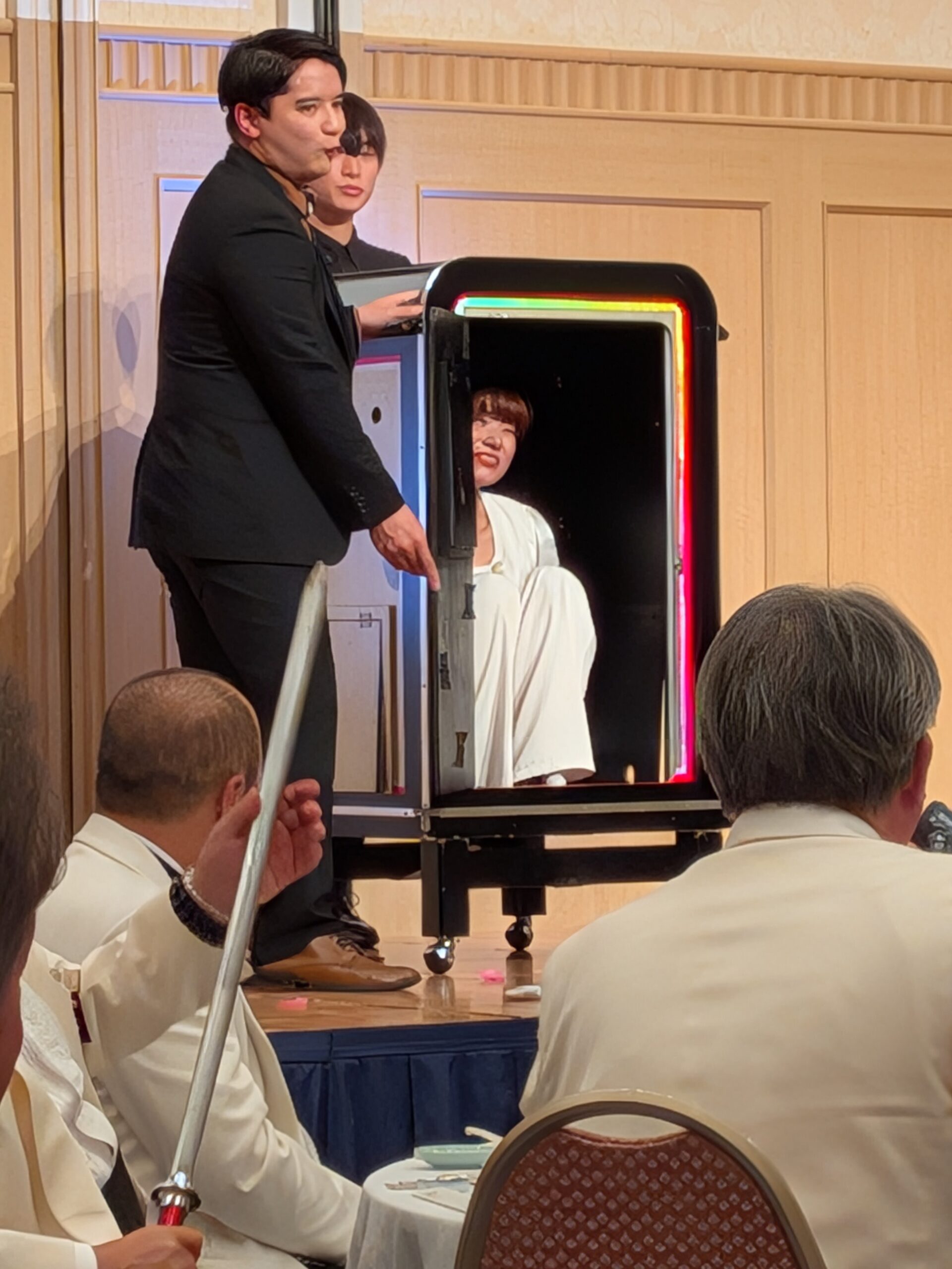夜は札幌プリンスホテル 国際パミール館においてMD333複合地区主催の「議長・ガバナーを囲む晩餐会」に参加、複合地区の250名が集いました。L水沼議長、5地区のガバナーが挨拶をされ、各地区の課題などを共有することが出来ました。余興では333-A地区 新津LC所属の「HIDE笹川L」によるイリュージョンマジックショーを楽しみ、OSEALフォーラムを祝いました。