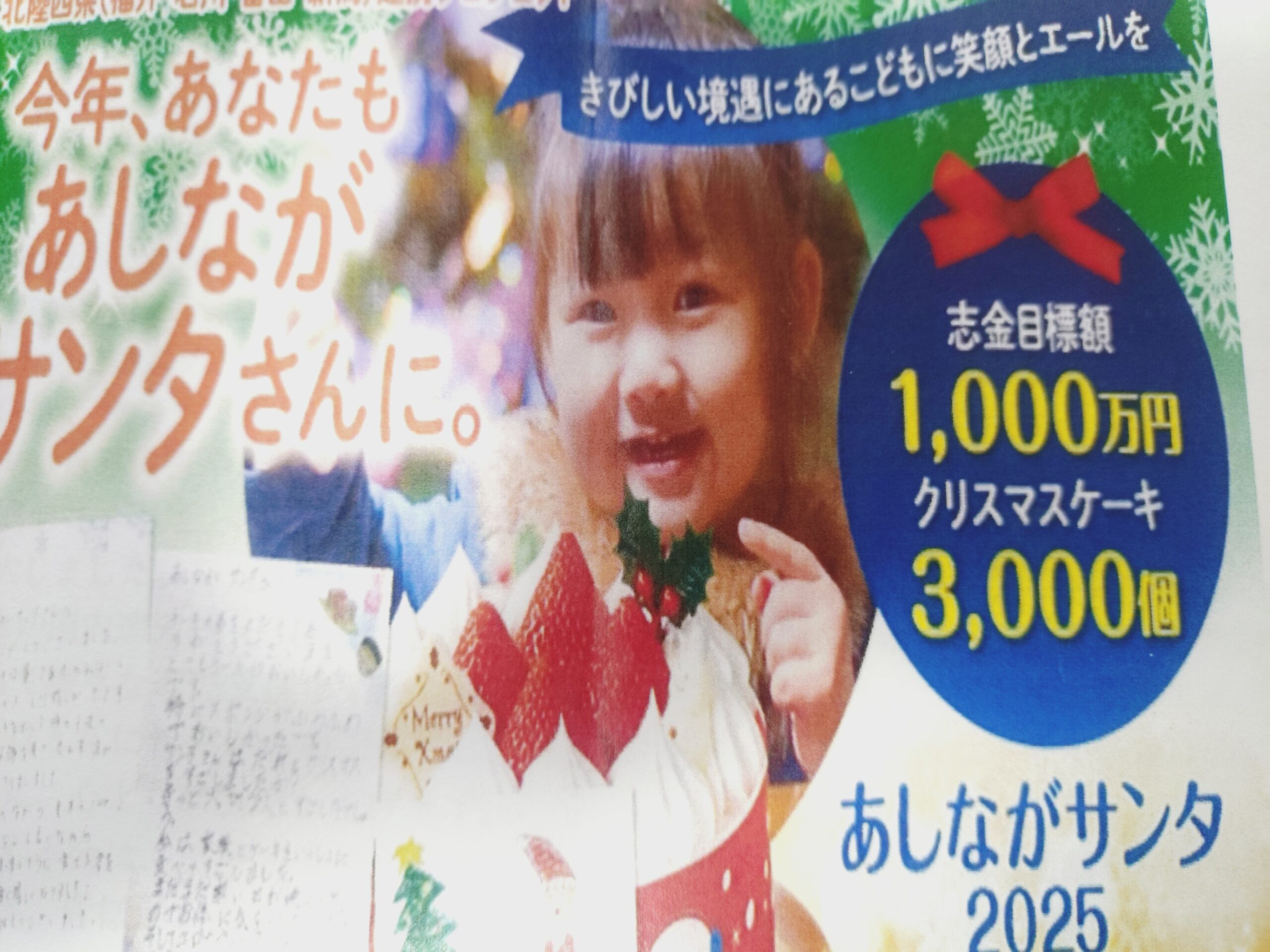 12/14、新潟県フードバンク推進協議会の【あしながサンタX’masケーキプロジェクト】に寄付金支援として参加させていただきました。