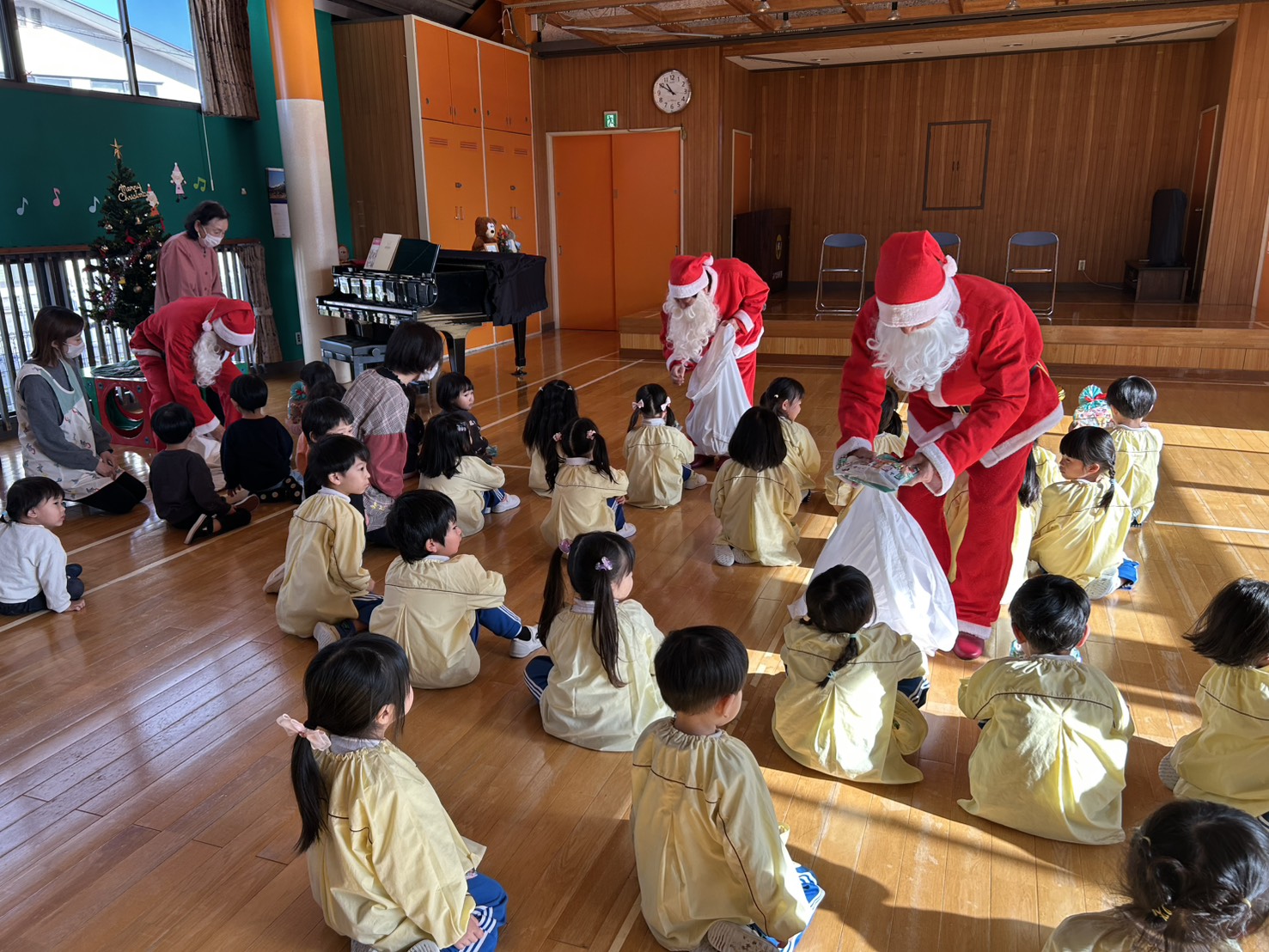 12月18日 地域の保育園・こども園・幼稚園へサンタ訪問 ホーム各種お知らせクラブからのお知らせ越後西川ライオンスクラブ 越後西川ライオンスクラブ 2025.12.19 2025年12月18日 地域の保育園・こども園・幼稚園へ会員がサンタクロースに扮してプレゼントを届けました。食物アレルギーに気を付けながらプレゼントを用意。子ども達の笑顔に癒されお返しのダンスなどで楽しい時間を過ごしました。これからも継続できるよう頑張ります。