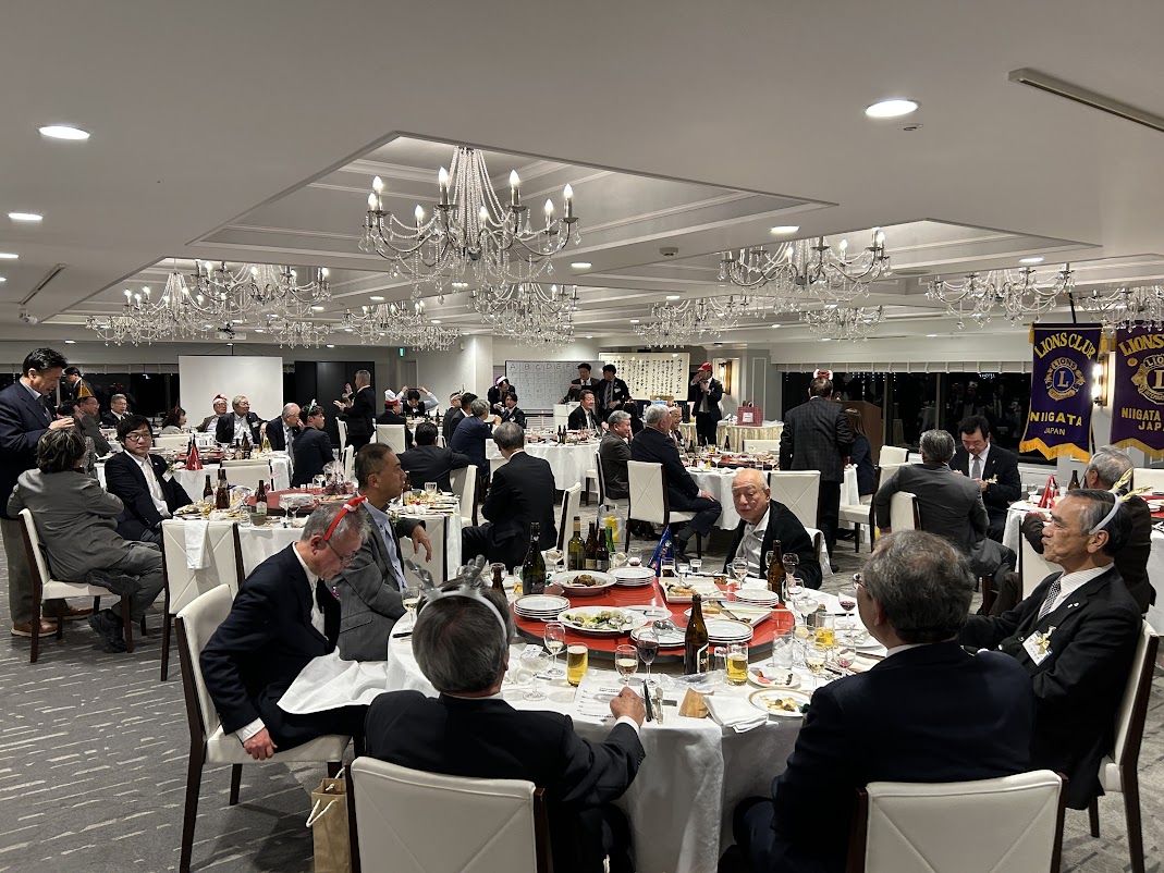 12月18日(木)新潟LC・新潟北LCクリスマス合同例会を開催しました ホーム各種お知らせクラブからのお知らせ新潟北ライオンズクラブ 新潟北ライオンズクラブ 2025.12.23 2025年12月18日(木)、ホテルイタリア軒にて新潟ライオンズクラブ・新潟北ライオンズクラブクリスマス合同例会が行われました。 例会は両クラブの幹事による進行でスムーズに終わり、お楽しみの懇親会は、新潟ライオンズクラブの皆様が計画してくださった「チャリティーオークション」、「連想ゲーム」で大いに盛り上がりました。 チャリティーオークションの収益金は、児童養護施設へのクリスマスプレゼントになるので、会員の皆様のやさしさが溢れたオークションとなりました。
