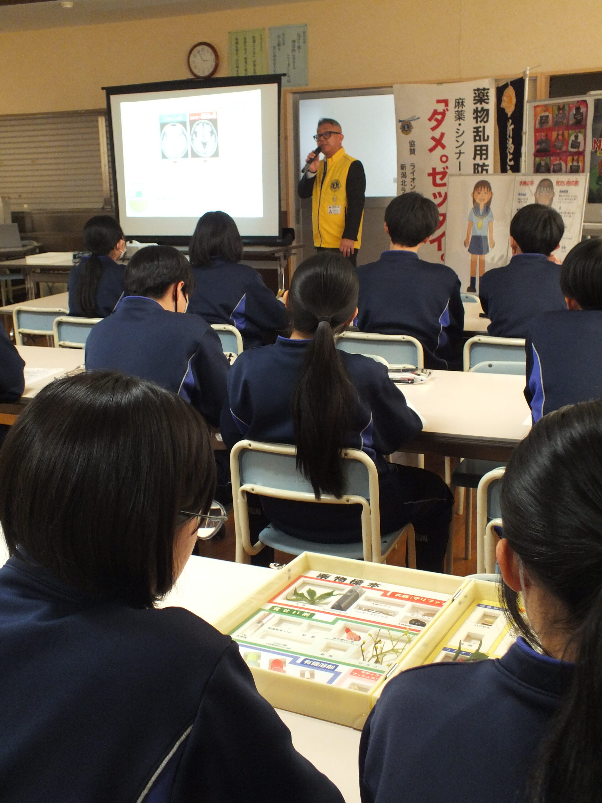 2月10日(火)濁川中学校にて、薬物乱用防止教室開催しました。 ホーム各種お知らせクラブからのお知らせ新潟北ライオンズクラブ 新潟北ライオンズクラブ 2026.02.10 2026年2月10日(火)、新潟市立濁川中学校にて、薬物乱用防止教室を開催しました。 新潟北ライオンズクラブの薬物乱用防止委員が、学校を訪れ、3年生の生徒を対象に行いました。 薬物についての、グループディスカッションを組み入れたり、生徒自身に考えてもらうような内容を心掛けました。