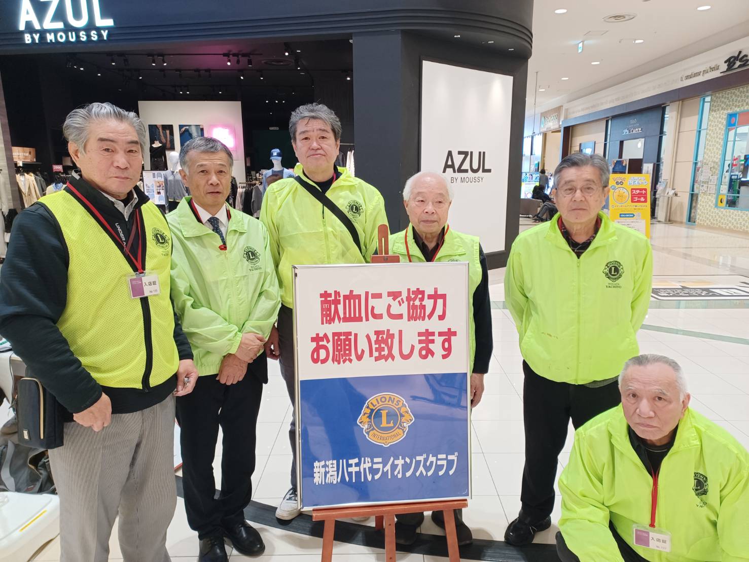 2月14日(土)献血PR活動 ホーム各種お知らせクラブからのお知らせ新潟八千代ライオンズクラブ 新潟八千代ライオンズクラブ 2026.02.16 イオンモール新潟亀田インターにてL 山本、L加藤、L吉田、L清野、L大倉、L杉﨑の 6名で献血PR活動を行いました。新潟県赤十字血液センター職員から、冬場の血液が 不足しているため、献血受付時間を1時間延長するとの話があり、来店客への積極的な 声かけ、PRティッシュペーパー配布活動を実施しました。