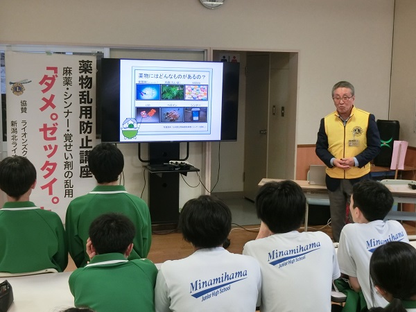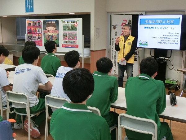 2月6日(金)南浜中学校にて、薬物乱用防止教室開催しました。 ホーム各種お知らせクラブからのお知らせ新潟北ライオンズクラブ 新潟北ライオンズクラブ 2026.02.10 2026年2月6日(金)、新潟市立南浜中学校にて、薬物乱用防止教室を開催しました。 中学3年生の生徒を対象に、薬物の恐ろしさについてグループで話し合い、今後薬物への誘惑などに関して、気を付けなければいけないことを確認しました。