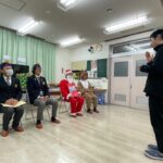2024-12-19 新潟県立長岡聾学校へ訪問 ホーム各種お知らせクラブからのお知らせ長岡悠久ライオンズクラブ 長岡悠久ライオンズクラブ 2024.12.25 12月19日新潟県立長岡聾学校を訪問して来ました。 〇野いちご工房のケーキ他クリスマスプレゼントを關会長から入寮生の皆さんへ サンタに扮したL星野 徹と一緒にケーキを渡しました。 〇寄宿舎の代表生徒は「今年度は夏も来てくれた。学生一同うれしいです。」とお礼の言葉を述べ ました。 〇最後にみんなで集合写真を撮りました。