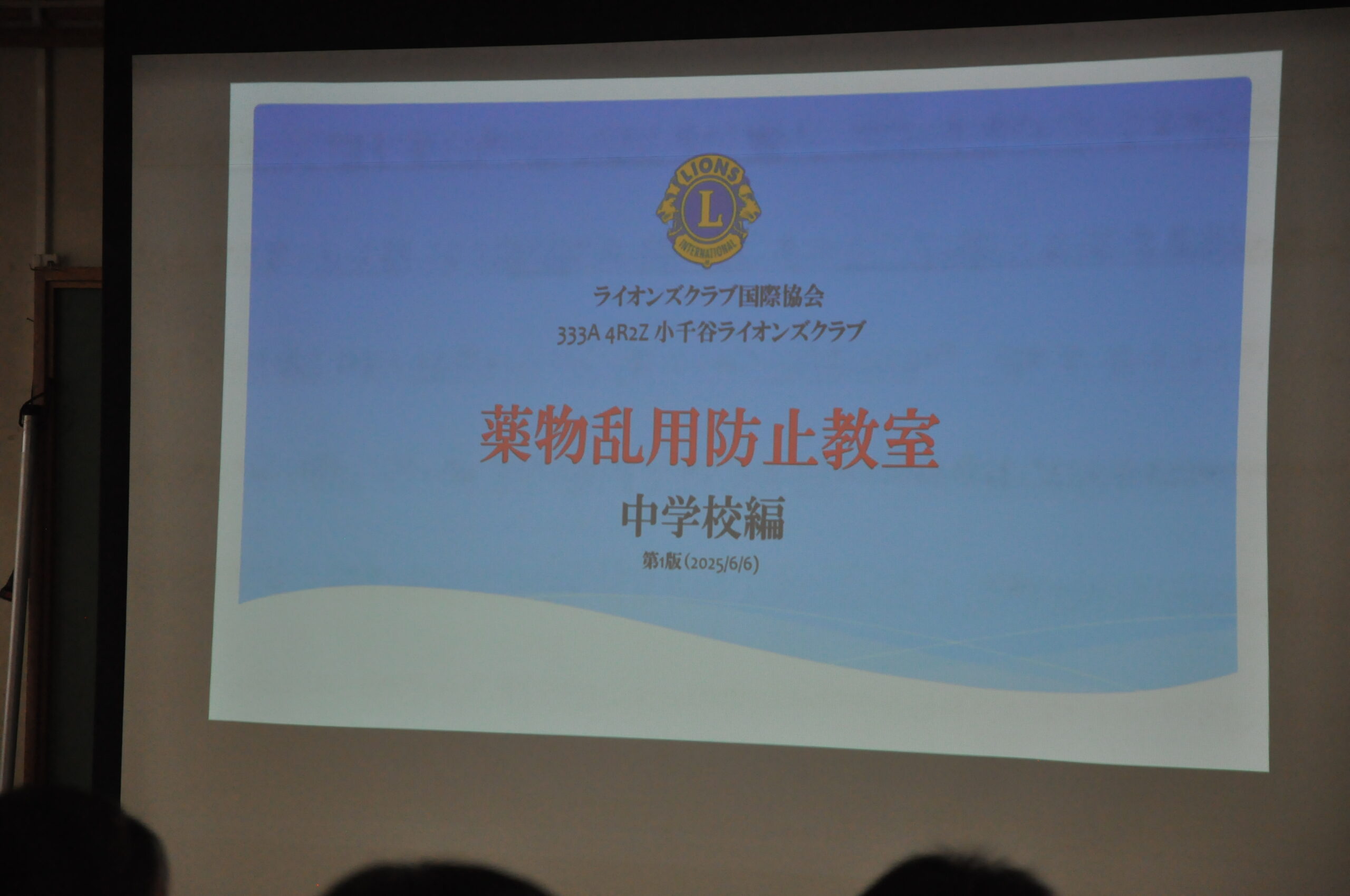 2025.10.8第1回薬物乱用防止教室開催 ホーム各種お知らせクラブからのお知らせ長岡柏ライオンズクラブ 長岡柏ライオンズクラブ 2025.10.30 10月8日(水)第1回薬物乱用防止教室を長岡市立秋葉中学校にて開催いたしました。 長岡柏ライオンズクラブHP 2025年10月8日 第1回薬物乱用防止教育講座 於:長岡市立秋葉中学校 - 長岡柏ライオンズクラブ第1回薬物乱用防止教育講座を、長岡市立秋葉中学校で一学年の生徒さんを対象に 開催しました。講師は、カイロプラクティックセンターおぢや カイロプラクターの 小川 和幸さんです。(小千谷ライオンズクラブ所属) 講義と動画の後