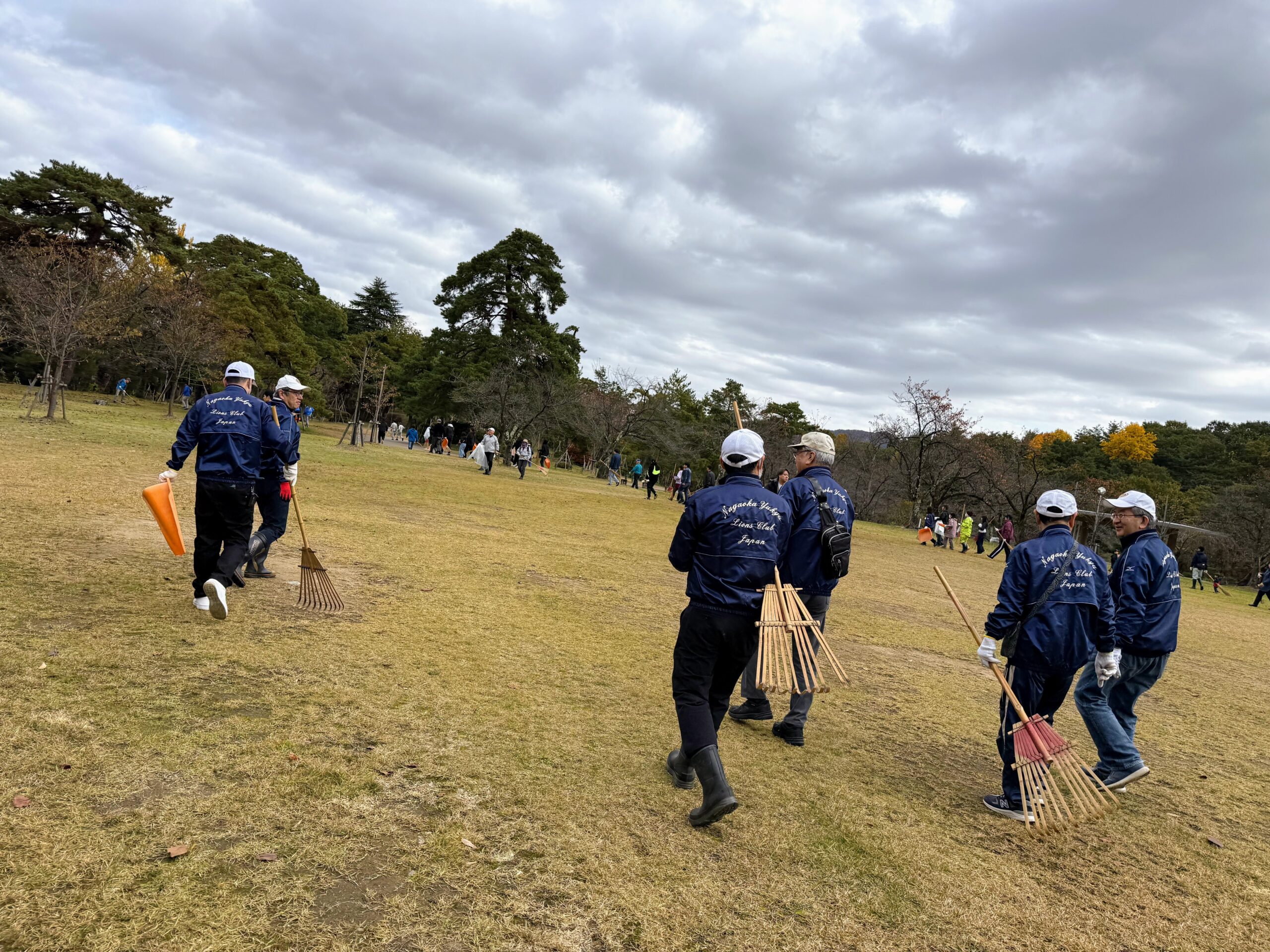2025-11-8 悠久山公園秋季大清掃のご案内 ホーム各種お知らせクラブからのお知らせ長岡悠久ライオンズクラブ 長岡悠久ライオンズクラブ 2025.11.08 11月8日(土)「悠久山公園秋季大清掃」に参加してきました。 開会式にて主催の未来の悠久山をつくる会の二澤会長のご挨拶の後、道具を手に各グループに分かれての作業になります。 秋晴れの中、竹ぼうきや熊手を手に落ち葉を集めてまわりました。 主催者から、悠久山を愛するには悠久山を知ることからとのお話があり、 作業終了後に「悠久山 自然と文明の記録」と題して46年前に発刊された 冊子の復刻版が配布されました。 参加メンバーの皆さん、お疲れさまでした。