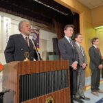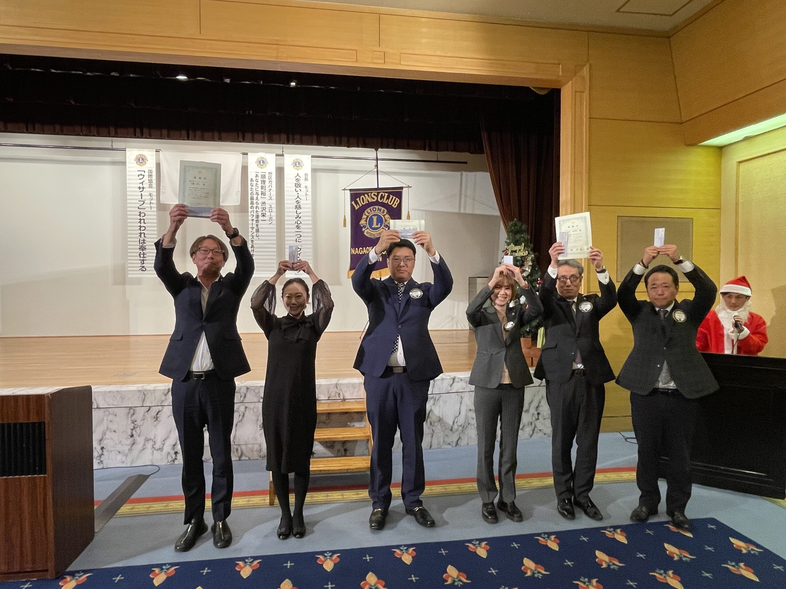 今年度11月に入会した3名の新入会員とスポンサーへ地区ガバナーより