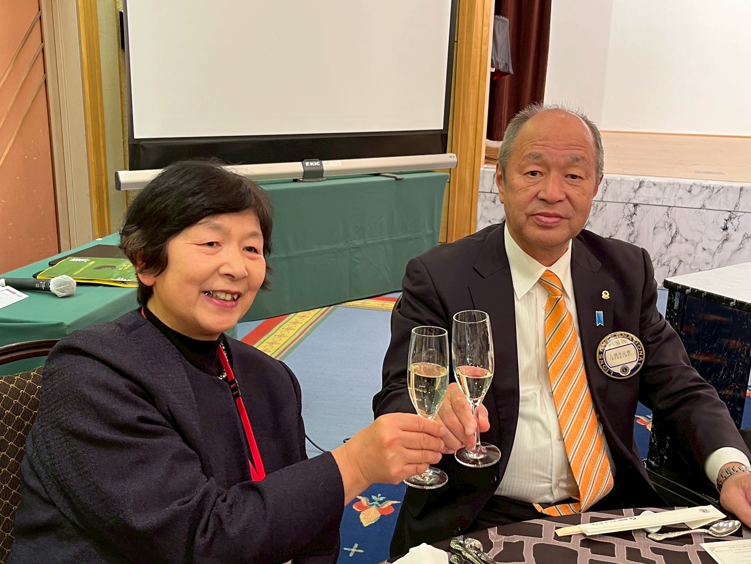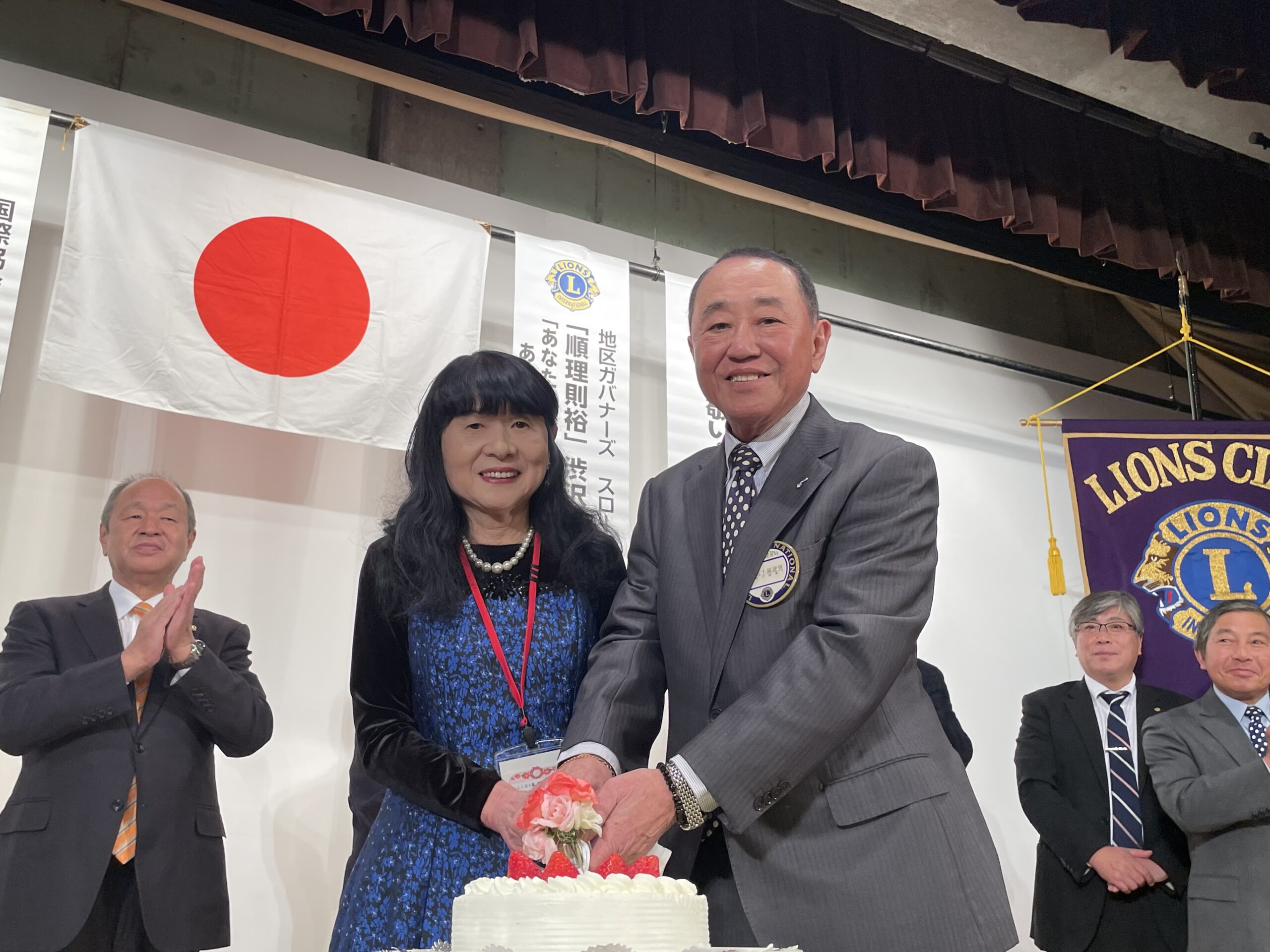 金婚式を迎えた五十嵐 達男Lご夫妻にクラブより御祝の品を贈呈しました。