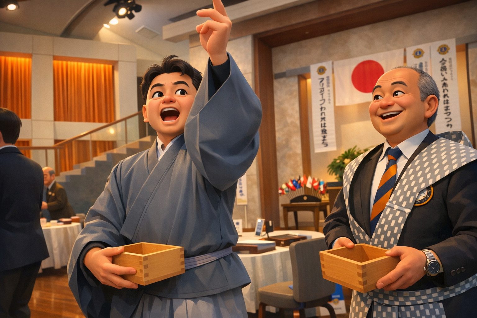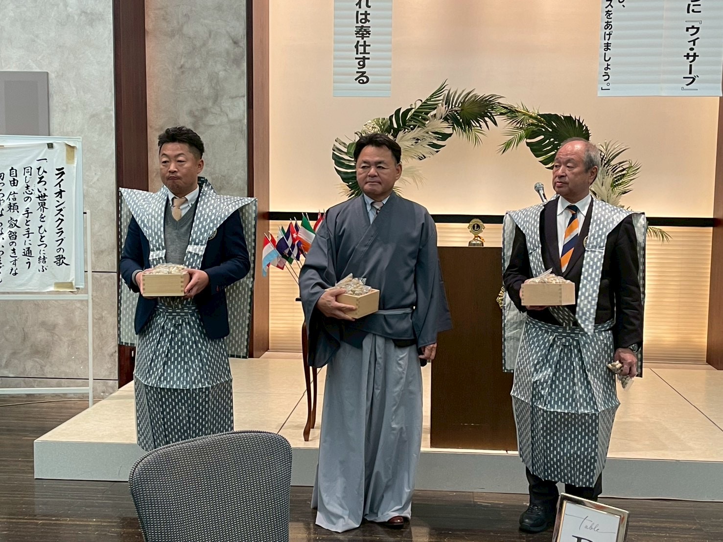 ☆例会の冒頭には、淡路忠利会長と年男を代表して酒井正春Lと小島 健太Lの3人が裃姿で豆まきを行いました。