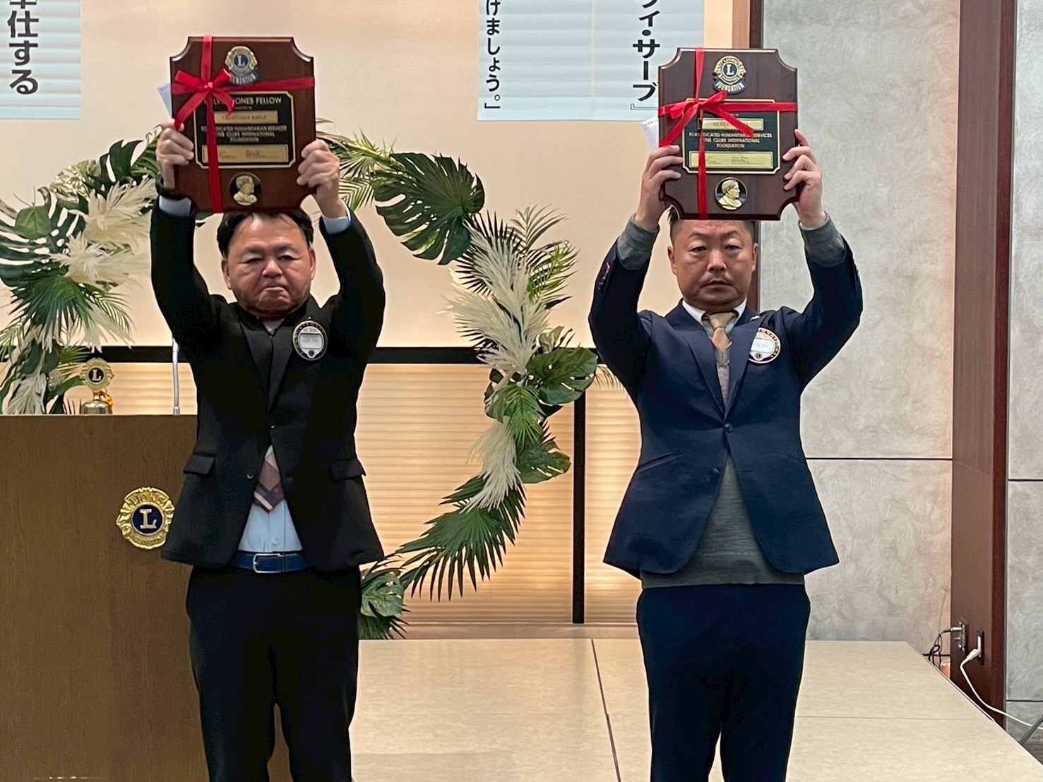 ☆メルビン・ジョーンズ・フェロー表彰の伝達:LCIF$1,000を寄付されメルビン・ジョーンズ・フェローとなられた淡路 忠利Lと小島 健太Lにライオンズクラブ国際財団(LCIF)理事長より感謝状などが贈られました。