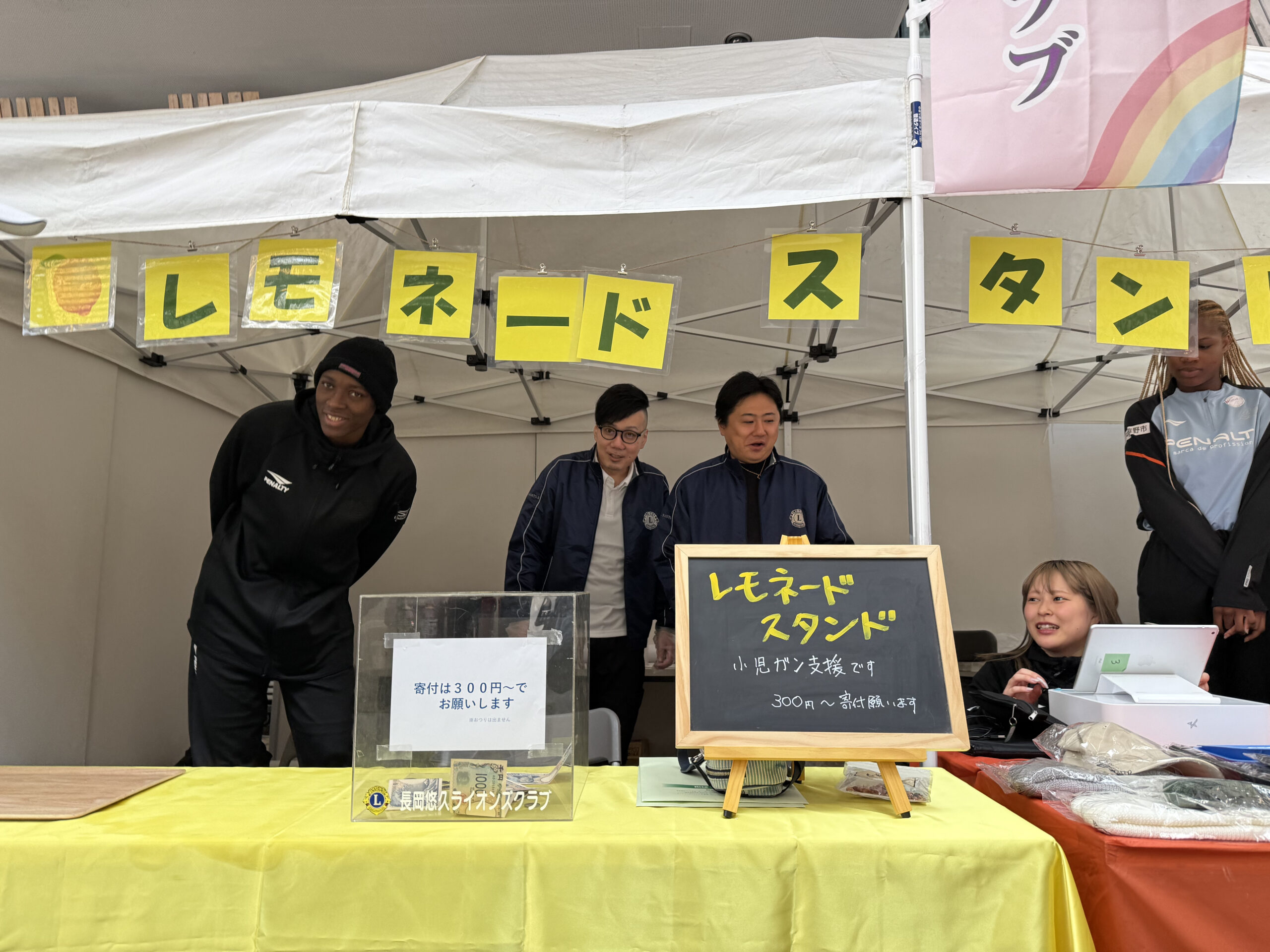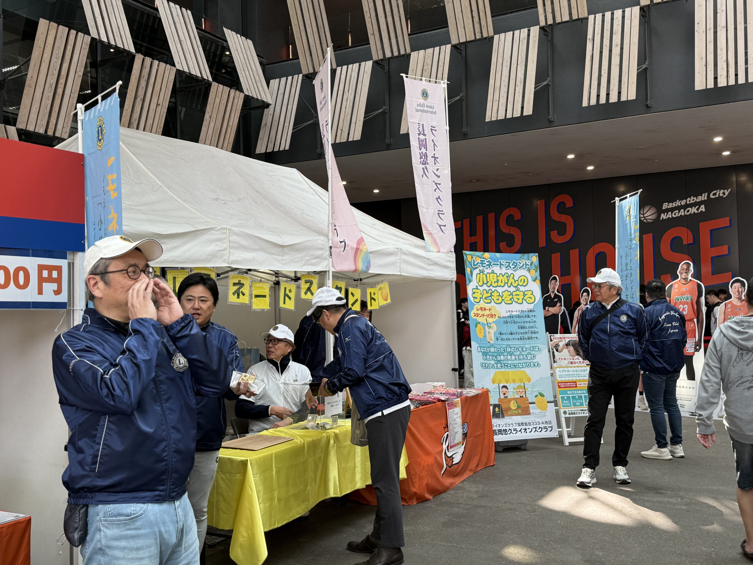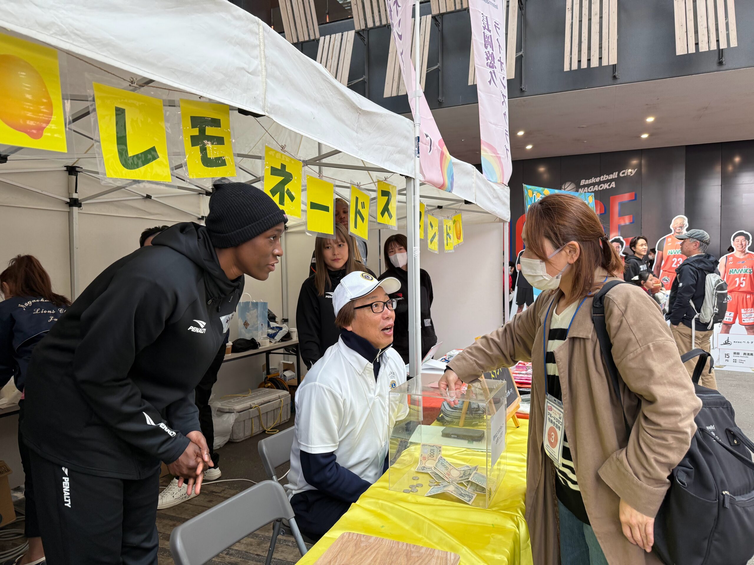 今回はブース内でアルビBBラビッツのグッズ販売コーナーとお隣だったので、選手目当てできた方々からもレモネードスタンドに寄っていただきました。