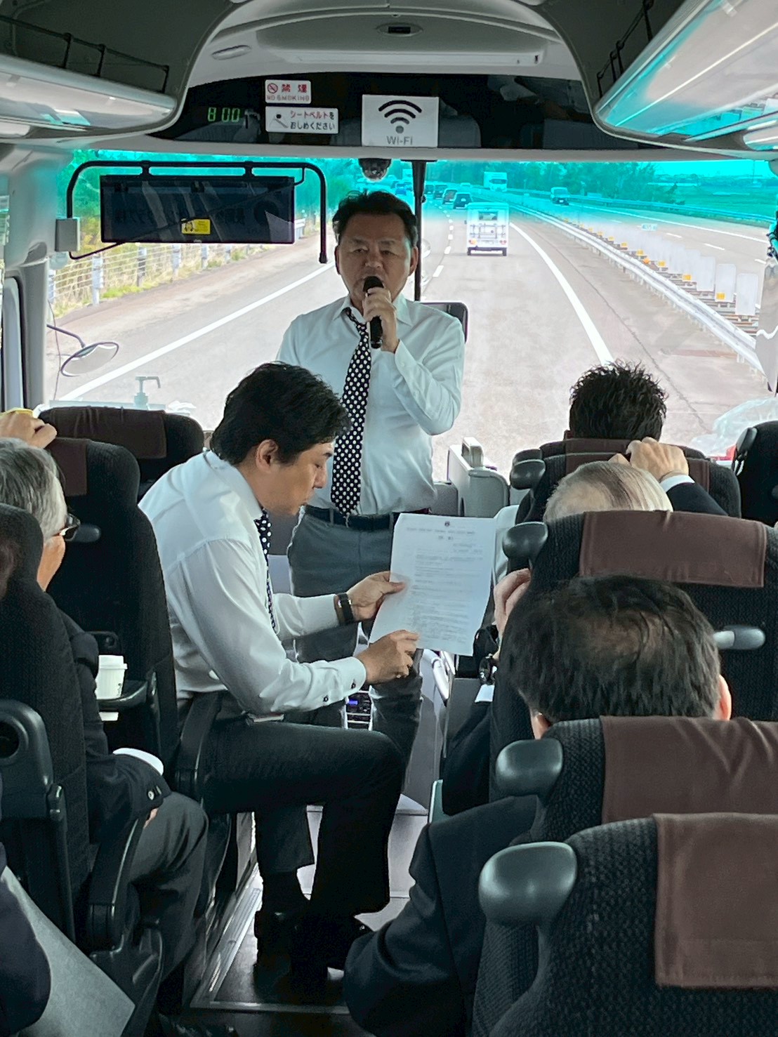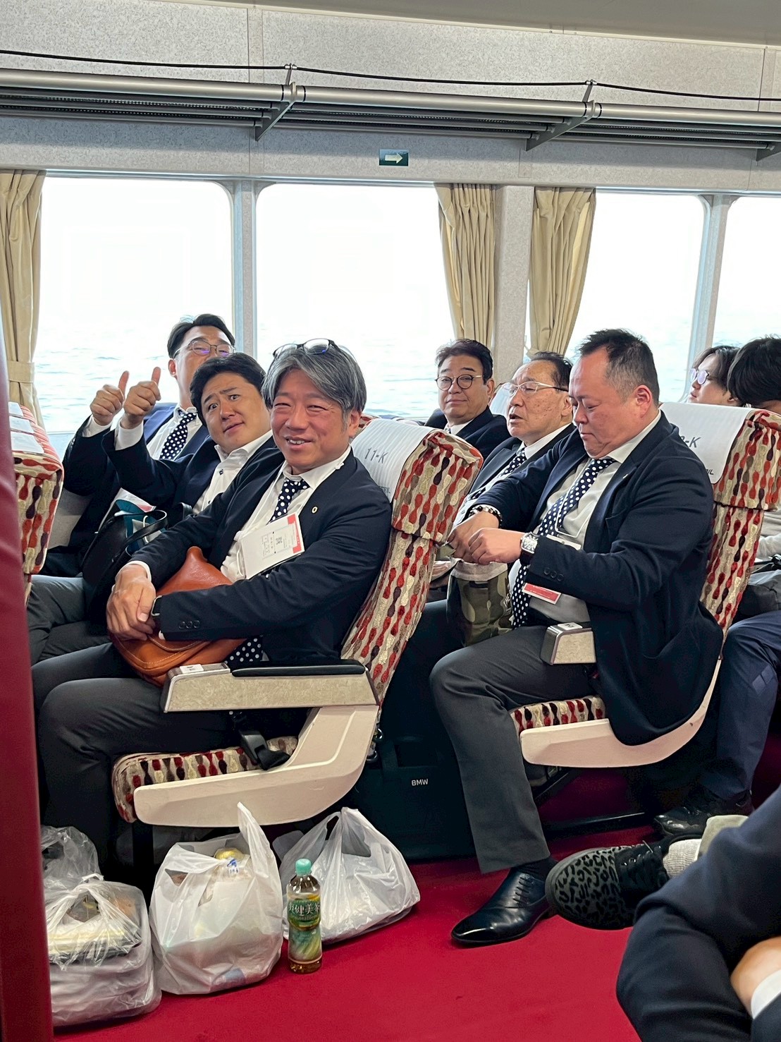 メンバーは朝長岡を出発し、バス車内で例会を開催後、ジェットフォイルにていざ佐渡へ向かいました。