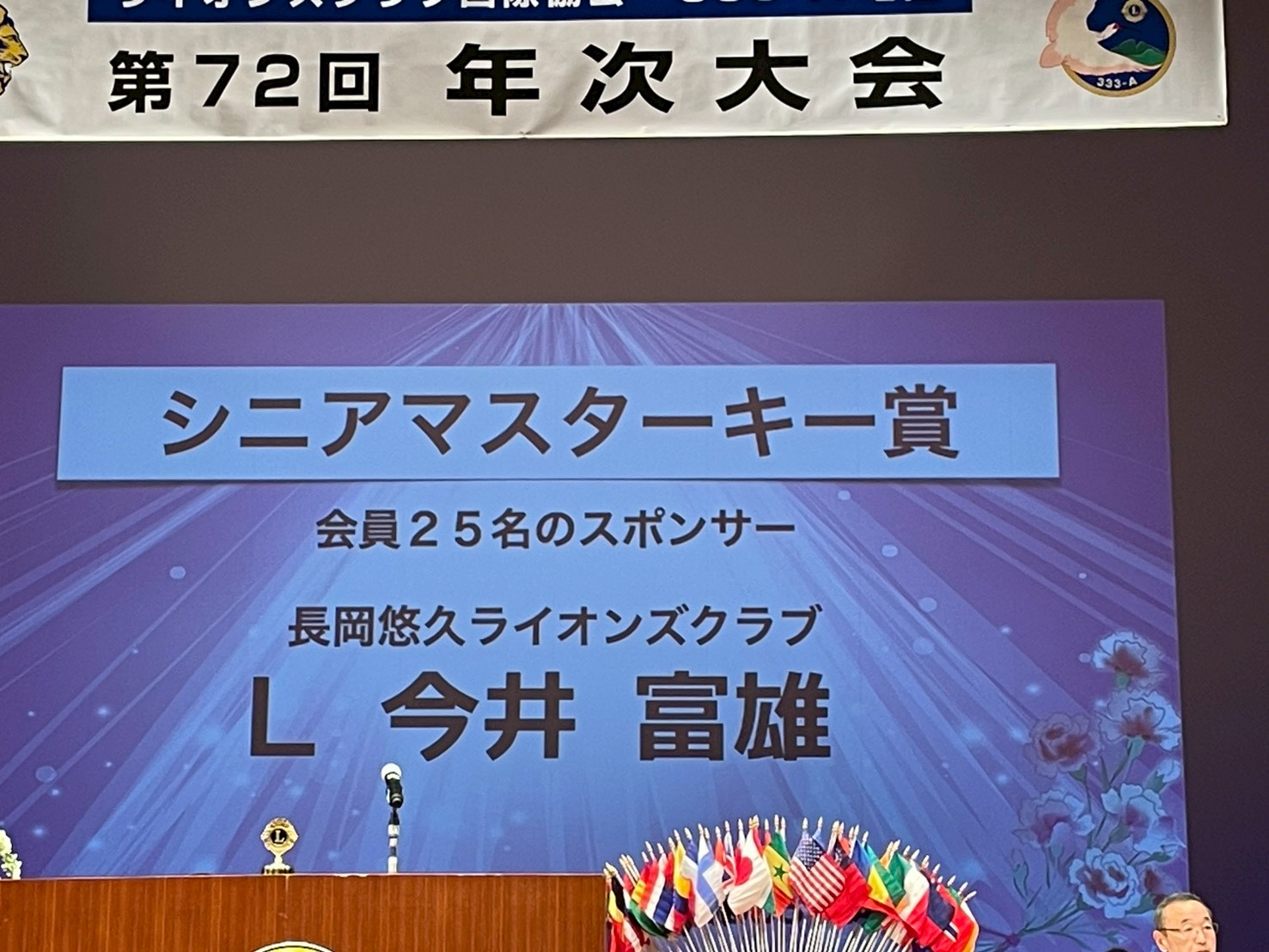 ☆今井富雄Lに「シニアマスターキー賞」が贈呈されました