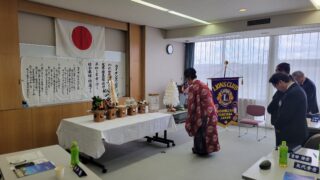 木戸会長になって、初めての100%出席の例会でした会の冒頭、御嶽山神社宮司様より、お祓いの祝詞がありました今年も1年、良い年でありますように